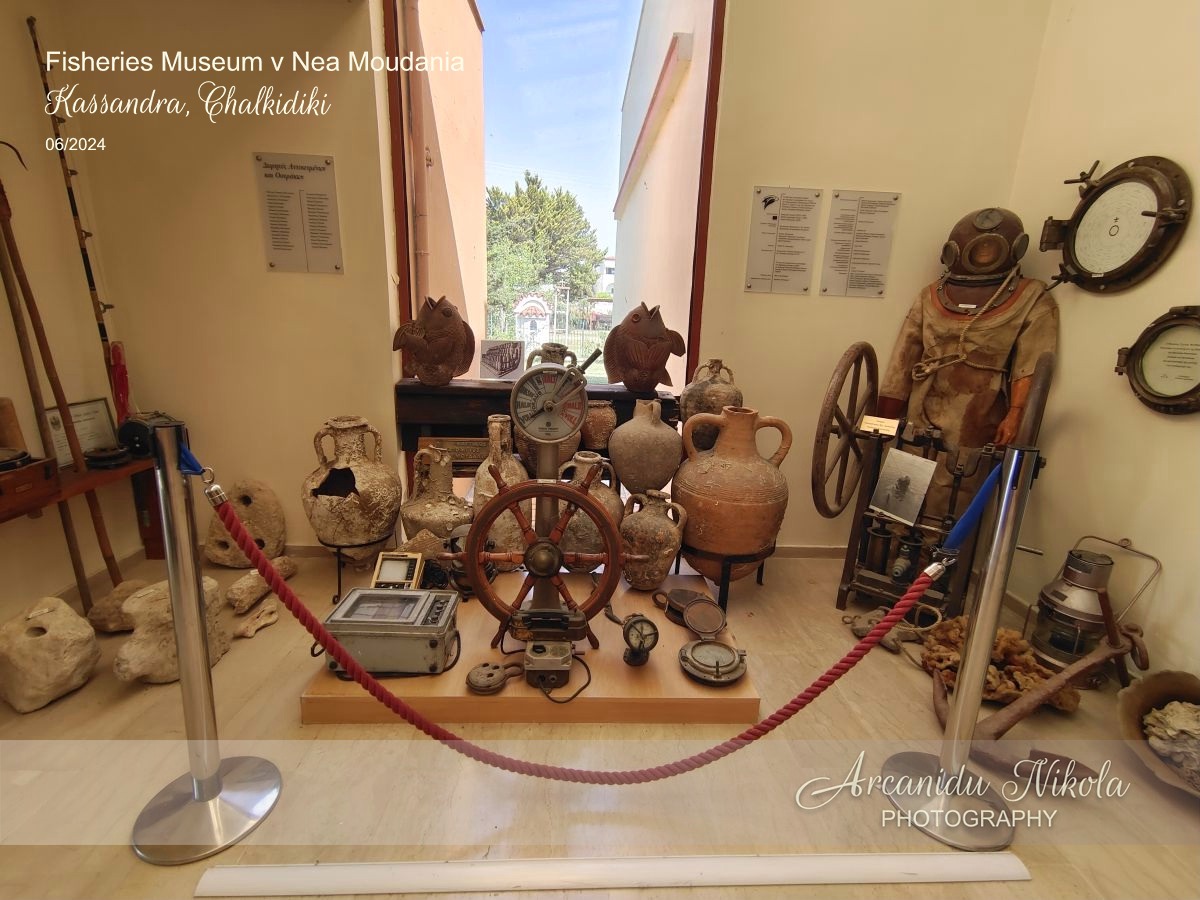 Kousek od muzea je veřejné tržiště Nea Moudania - otevřené jen ve středu od 7 do 14 hod. Mají tu vše, oblečení, domácí potřeby, zeleninu, ovoce, čerstvé ryby apod.