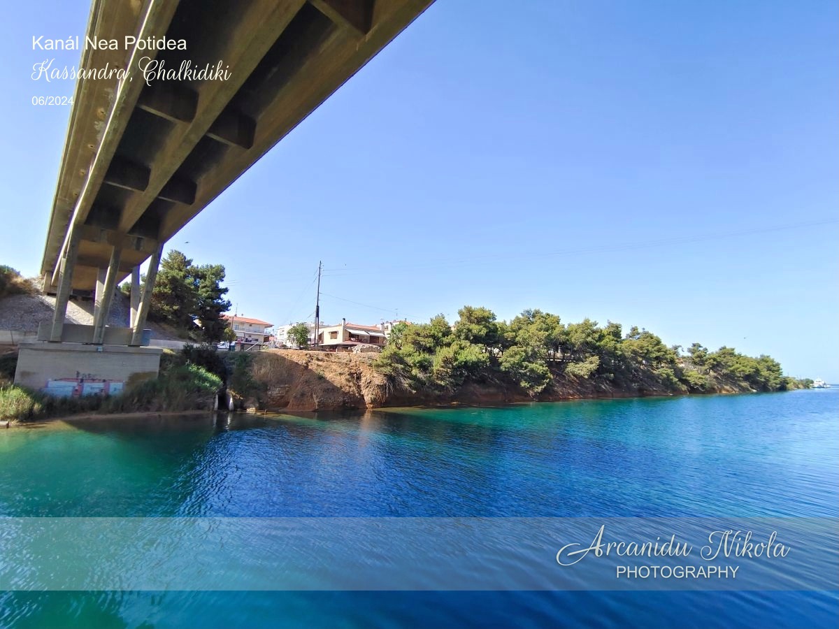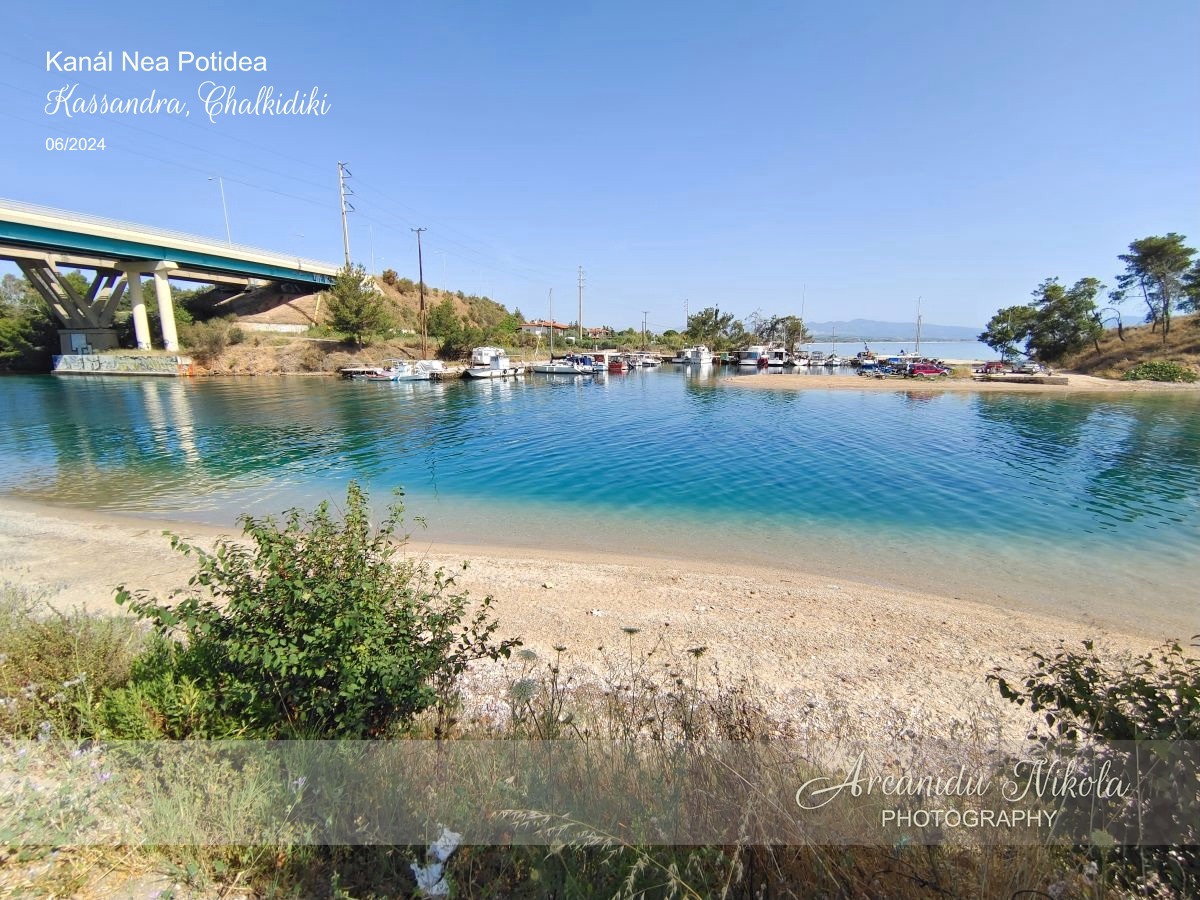 cestou na výlet jsme se zastavili u kanálu Nea Potidea. Kanál Potidea se datuje do 1. století našeho letopočtu. Podle některých zdrojů jej nechal postavit Kassandros v roce 315 př. n. l., aby propojil záliv Toroneos s Thermaickým zálivem a zajistil námořní průchod mezi dvěma břehy moře. Ve stejné době byla podél kanálu postavena zeď s věžemi v intervalech k opevnění města Kassandria, které bylo postaveno na místě starověké Potidea. Zbytky této zdi jsou stále viditelné. Kanál získal svou konečnou podobu v letech 1935 až 1937 a most, který se klene přes kanál, byl postaven v roce 1970. Kanál je 1250 metrů dlouhý a 45 metrů široký a slouží malým člunům k plavbě z jedné strany na druhou. Rozděluje poloostrov na dvě části a účinně proměnila Kassandru v ostrov. Kanál se nachází těsně před vesnicí Nea Potidea a je jednou z hlavních atrakcí této oblasti.