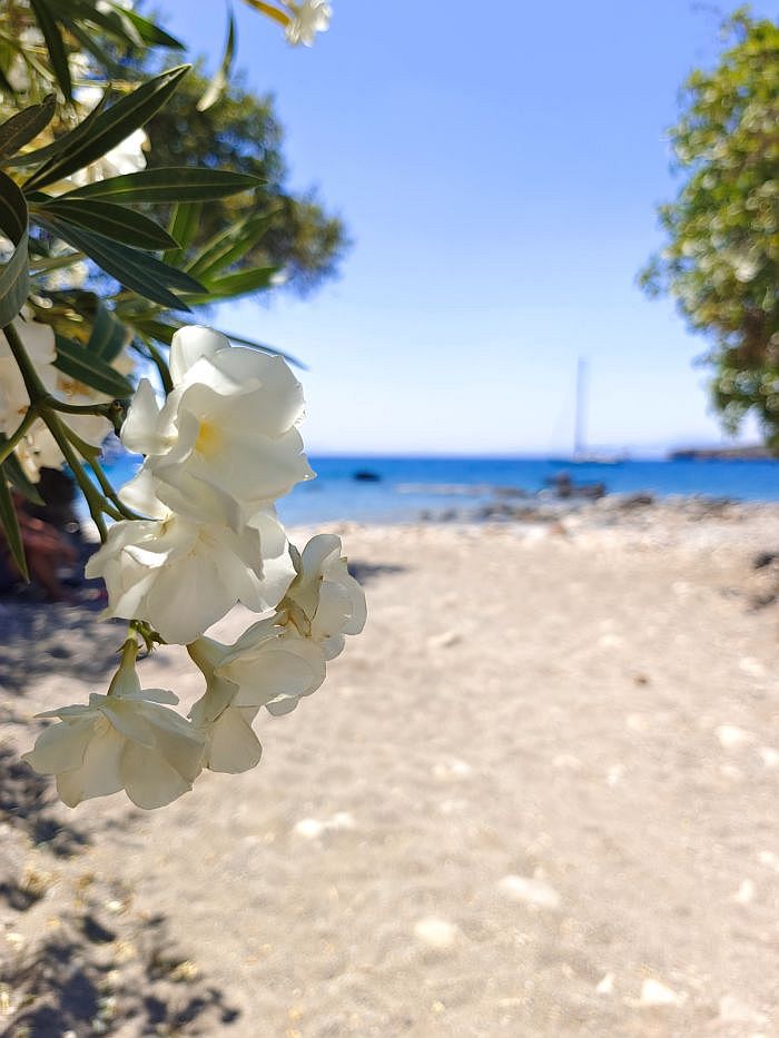 Stačí jen z pláže s lehátky udělat pár kroků kolem kamenů a dostanete se do míst, kde je méně lidí a více klidu, i více krásy přírody. Je zde půjčovna lodiček, šlapadel, kanoe apod.
