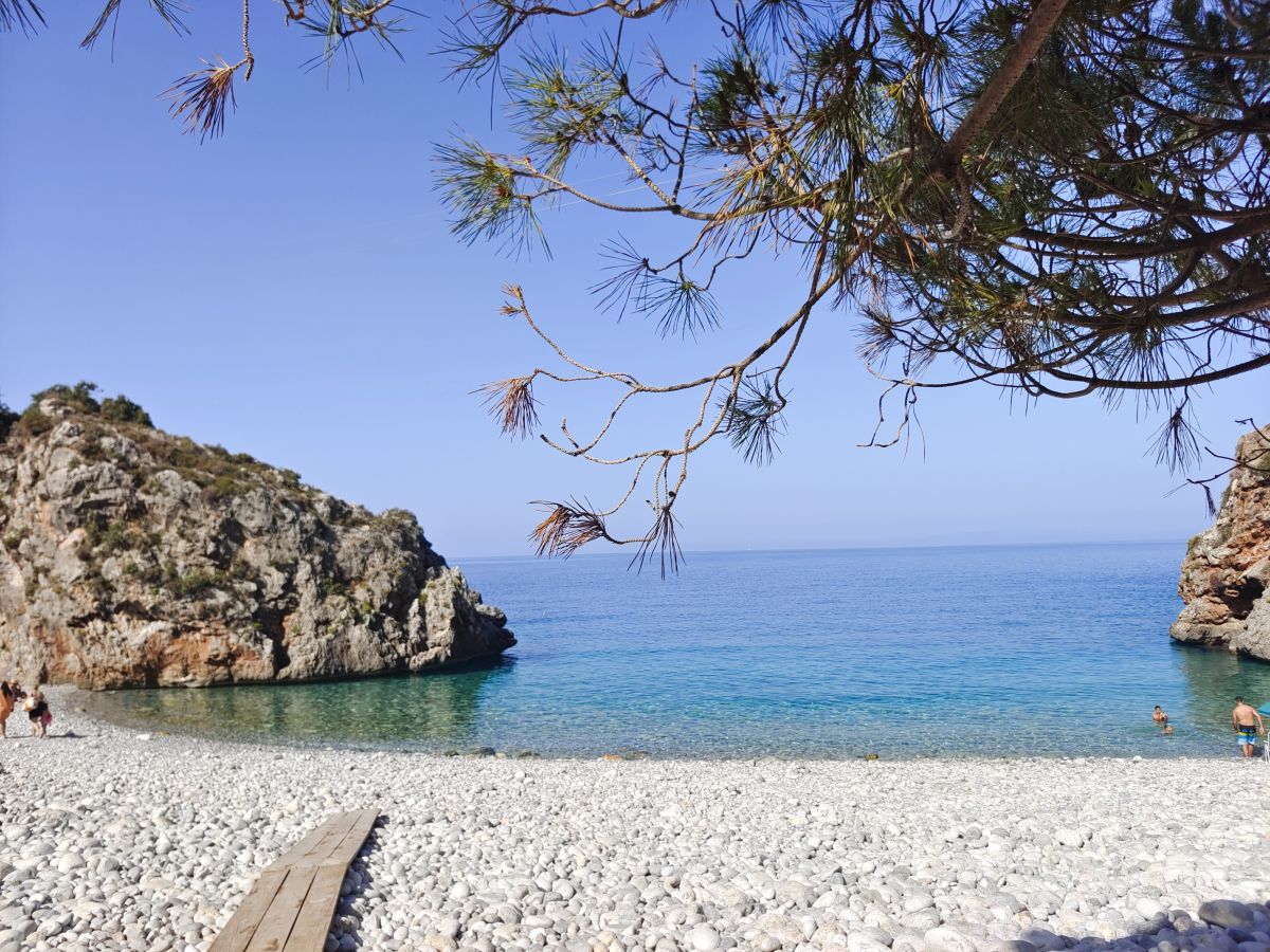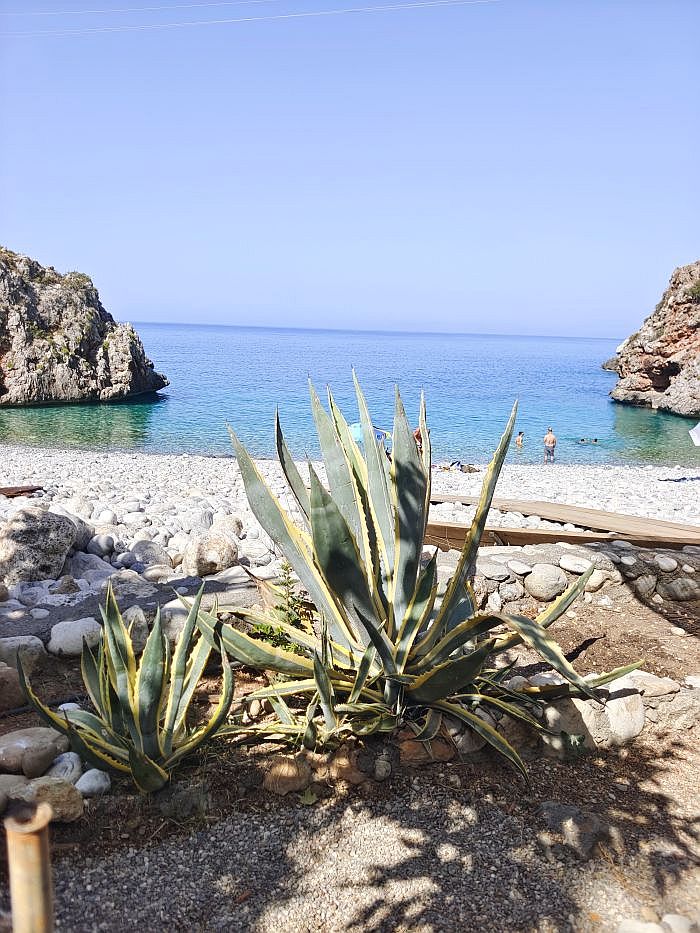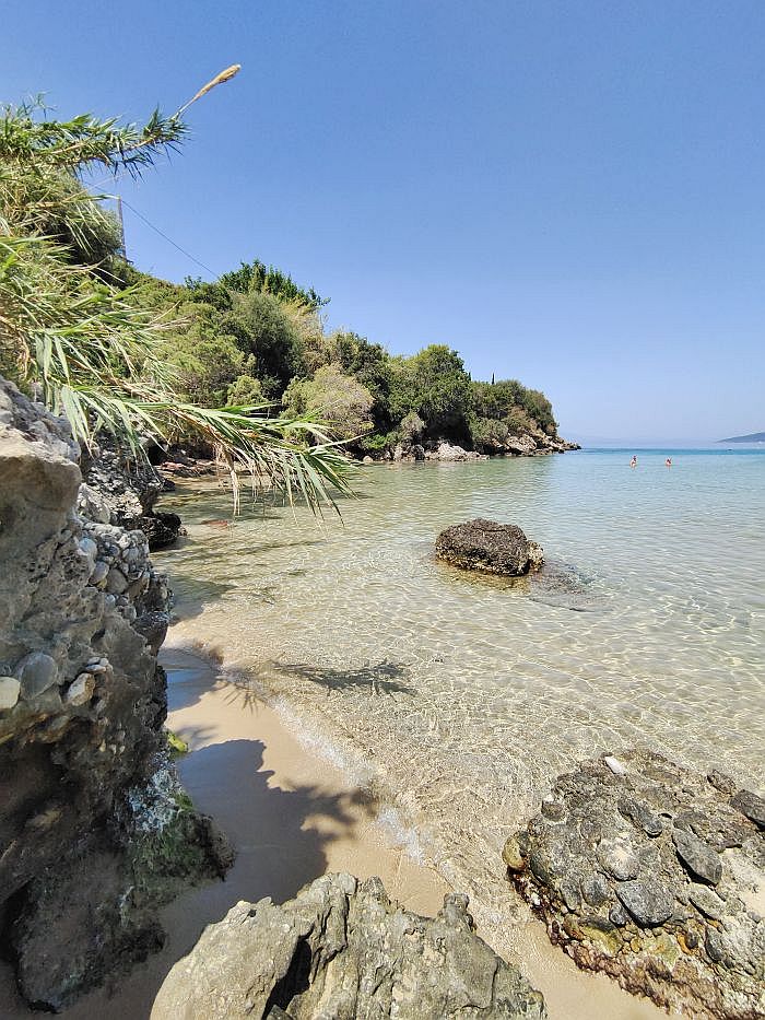 Místo nemá žádnou pláž, jen skály, kameny, nebo několik míst pod stromy, kde si můžete rozložit ručník, abyste si mohli sednout. V sezoně bývá přeplněné. Je lepší sem přijet ráno, abyste i zaparkovali. Parkovali jsme přímo nad pláží.