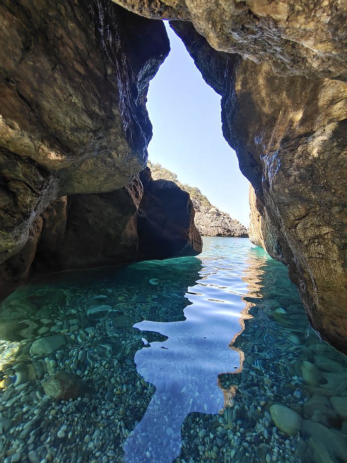 Je to podzemní koryto řeky Glyfada, která se po vytvoření malých jezírek v zemi Mani vlévá do moře.