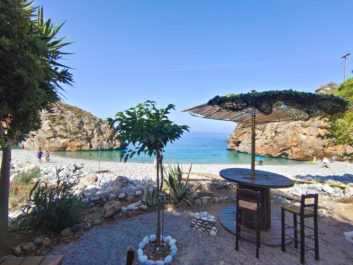 Na cestě do 2. ubytování jsme strávili několik hodin na pláži Foneas Pláž se nachází na přírodním místě s velmi malebnými výhledy, mezi horami, obklopená útesy. Zátoka s křišťálově tyrkysovou vodou a světlými