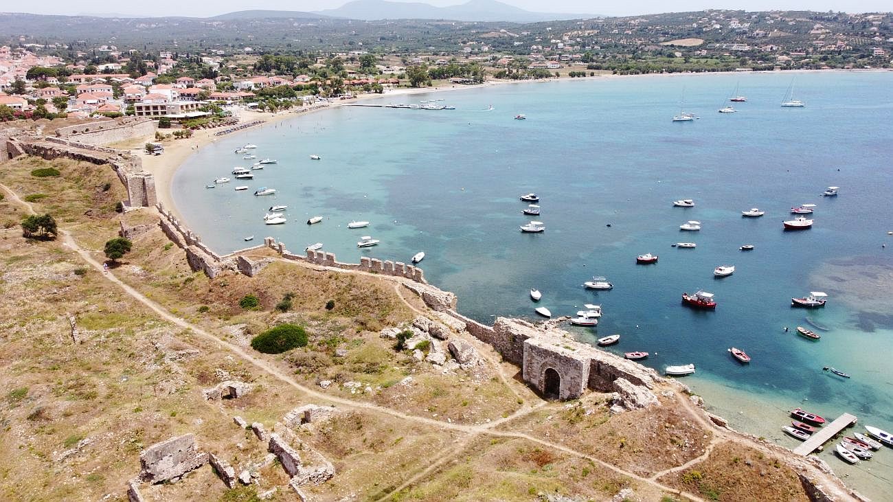 Nad pláží je jeskyně Krále Nestora, a pevnost Navarino, odkud lze pořídit krásné snímky. Vyšlapat nahoru k jeskyni byl pro nás v odpoledním čase offroad se saunou. Neapamatuji si, kdy naposledy ze mě takhle teklo :-D Ale koukat se pak dolů, a nechat ovívat větrem na kopci, stojí za to. Jeskyně je velká a zajímavá. Pevnost jsem už "nedala".