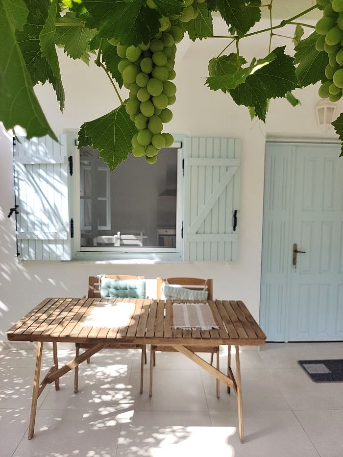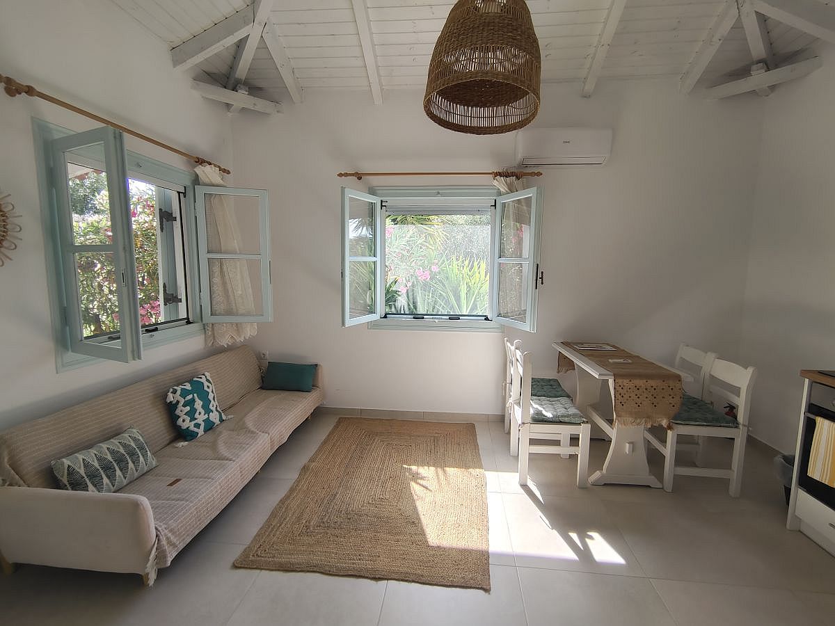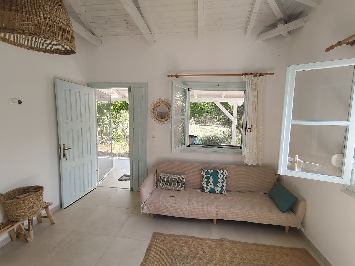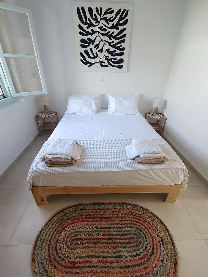 Celé ubytování je řešeno v přírodním stylu, a v jemných letních barvách, které k Řecku patří.