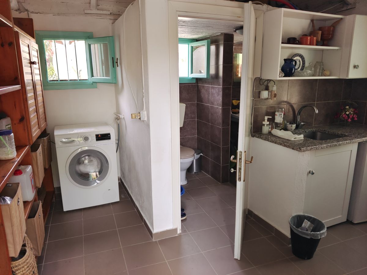 Kuchyně je velká, a je v ní také gauč. V domečku není TV, a to přesně z důvodu, jakým majitelé svá ubytování vedou - eco friendly styl, bez chemie, v přírodní formě. Kdo by taky chtěl na dovolené trávit čas u televize, že?