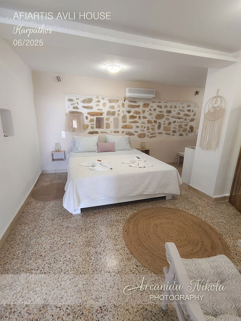 Afiartis Avli House je moderní, prostorný, čistý a uklizený dům o velikosti 65 m². Dům je v blízkosti letiště, a nejdůležitějších vesnic a pláží na jihu ostrova. Díky lokalitě je zde klid.