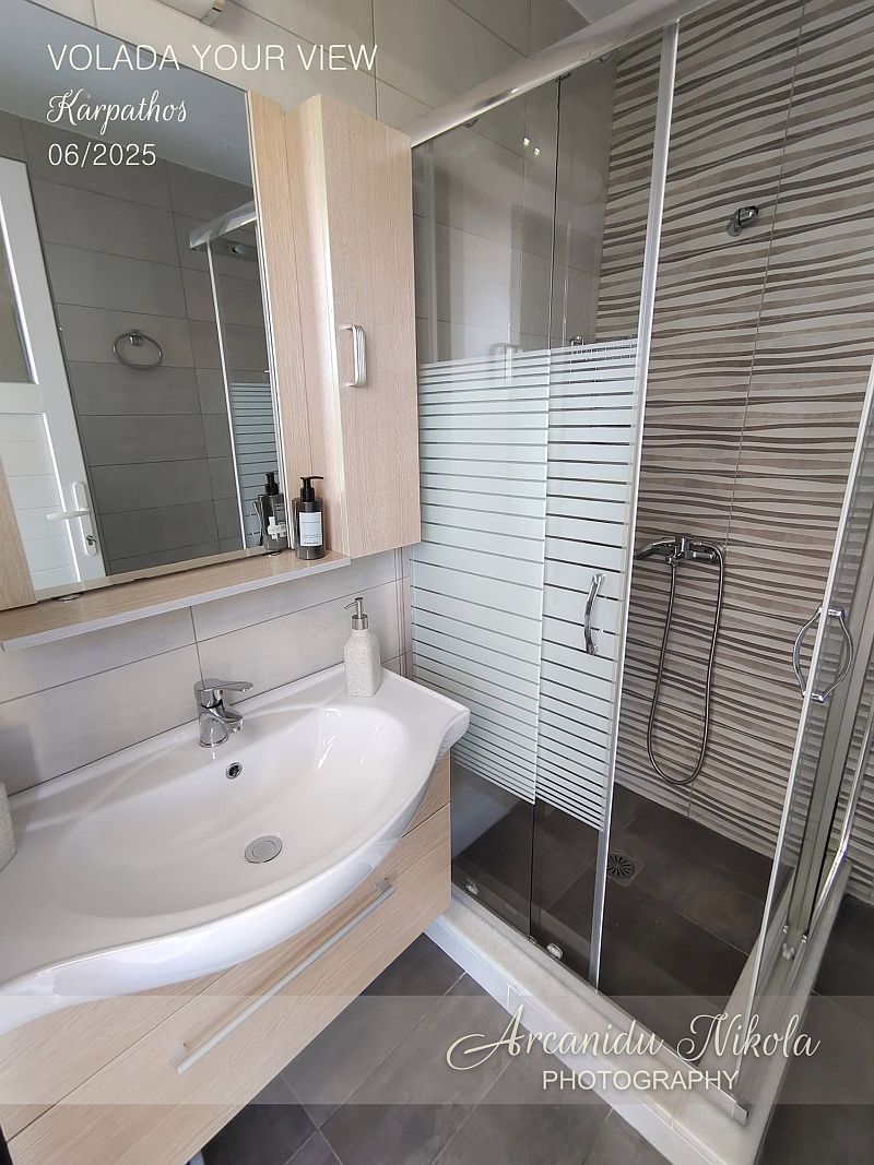 Nakonec se mi moc líbilo vycházet ze sprchy na terasu, na čerstvý vzduch. Sprcha na první pohled vypadá malá, ale malá opravdu není! Klidně se v ní můžou umýt 2 lidi spolu ;) Koupelna je pěkná, čistá, renovovaná.