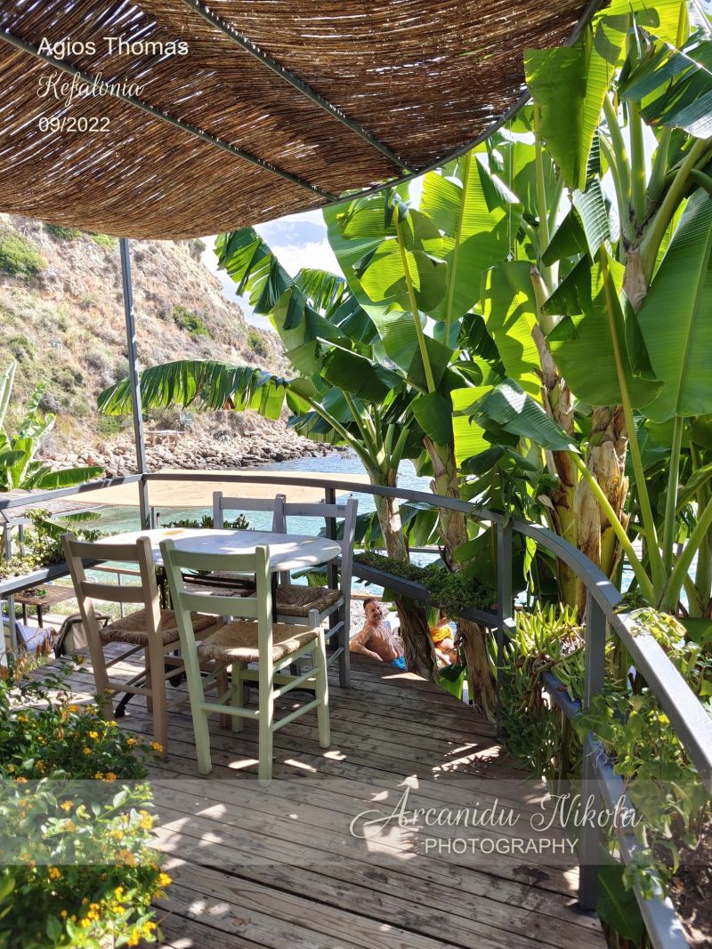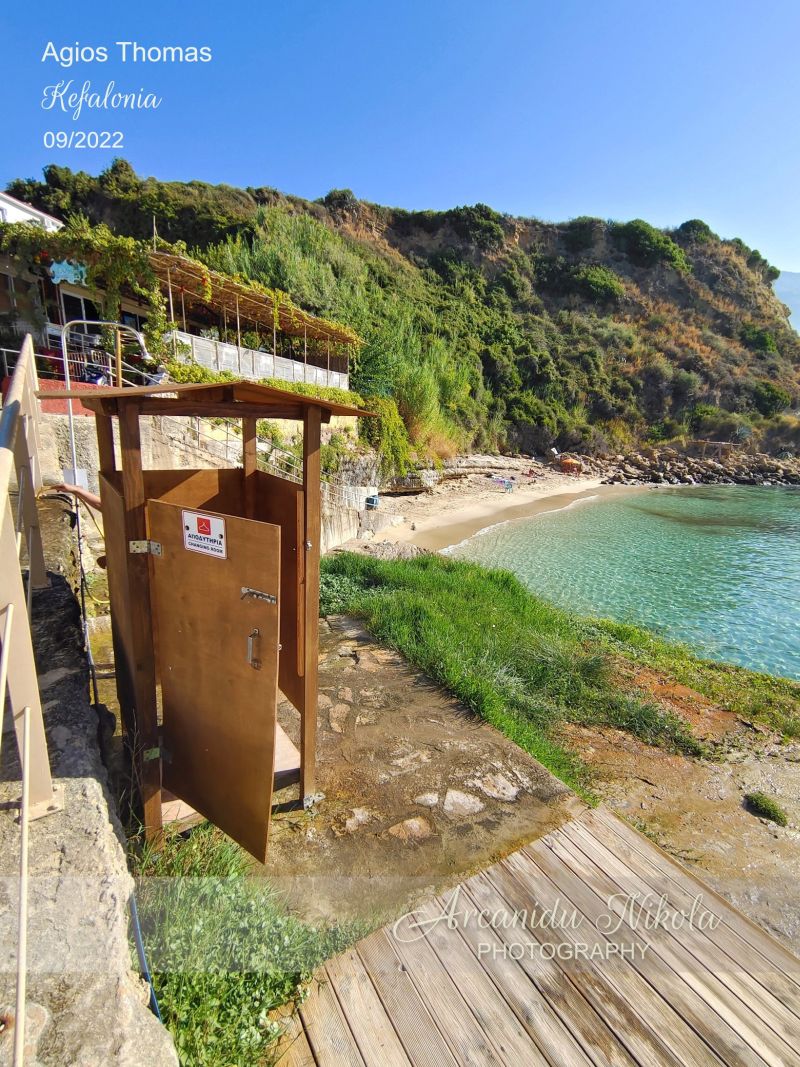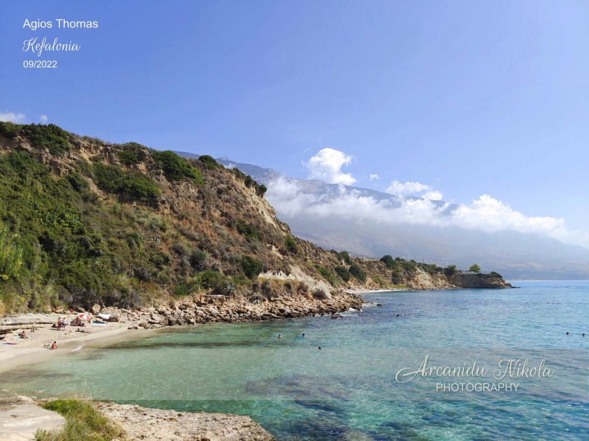 Agios Thomas se skládá ze dvou písečných pláží. První pláž je malá s jemným pískem a hned nad ní je malebná taverna. Druhá pláž je větší a dosažitelná přes skalnatou desku, která je alternativním místem pro opalování.
