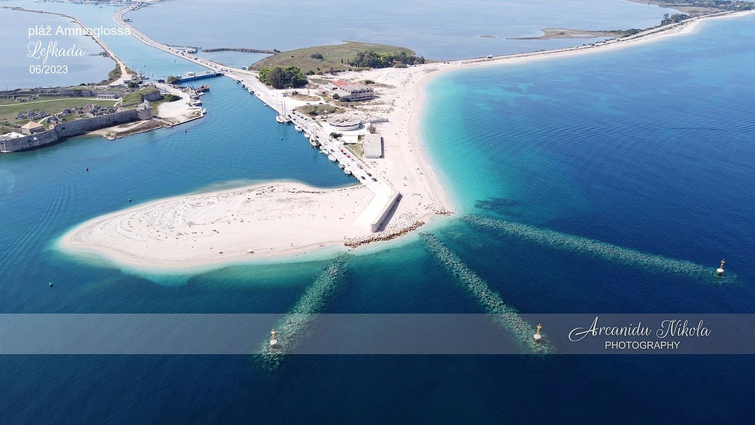 hlavního města ostrova Lefkada, a to přímo u cesty, která přivádí návštěvníky z území pevninského Řecka.