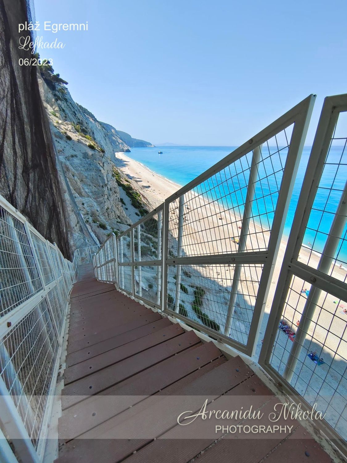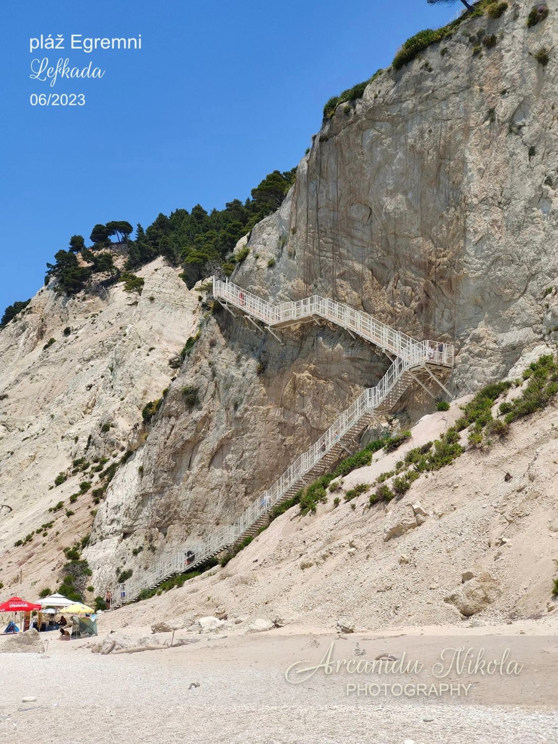 Egremni je panenská pláž nacházející se na západním pobřeží Lefkady. Pokud jste líní, nemáte fyzičku, trpíte funkčním postižením pohyblivosti, nebo se bojíte výšek a nechcete platit 8 € za parkování, tak sem možná nejezděte.
