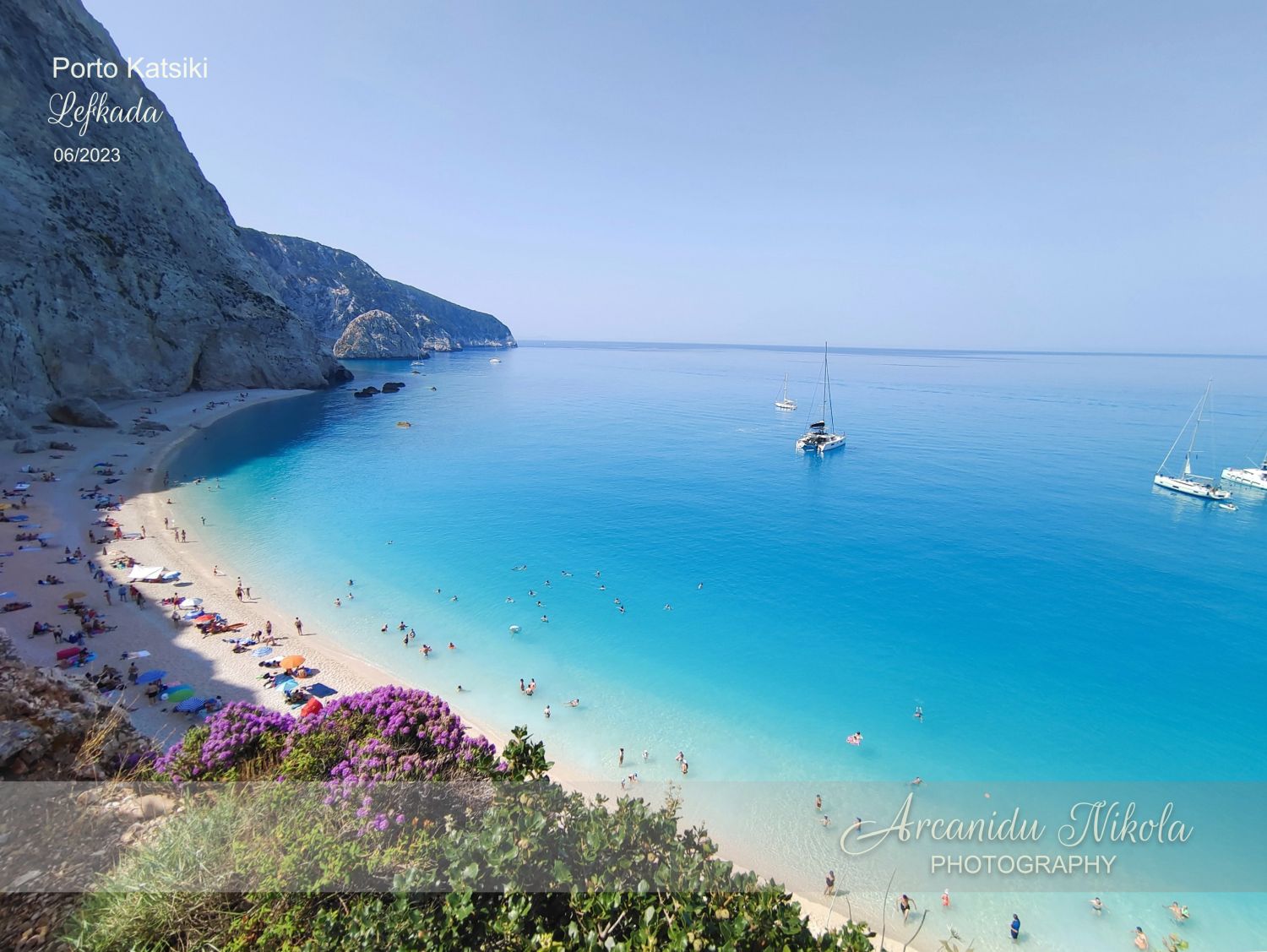 podle některých průvodců je ohodnocena dokonce jako osmá nejhezčí pláž na světě. Pláž Porto Katsiki je dlouhá pouhých 300 metrů, proto bývá často přeplněna. My přijeli v 9 ráno a mohli jsme si vybrat místo a fotit ještě téměř prázdnou pláž.