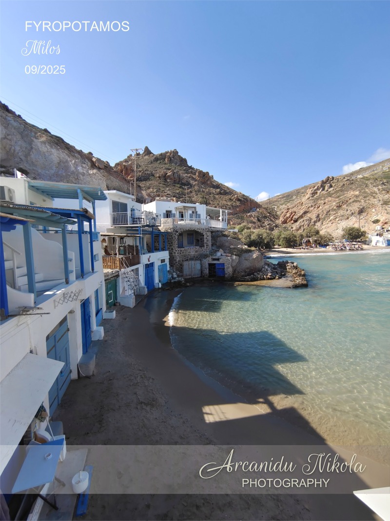 Fyropotamos je malá přímořská rybářská vesnice na ostrově Milos a jedno z nejfotografovanějších míst v Egejském moři. Malebná vesnice se slavnými „syrmata“, malými domy s barevnými dveřmi a okny,
