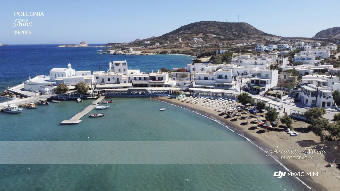 Z vesnice jezdí pravidelné spojení malou lodí na sousední ostrov Kimolos. Hlavní pláž Pollonie je písčitá a u turistů oblíbená.