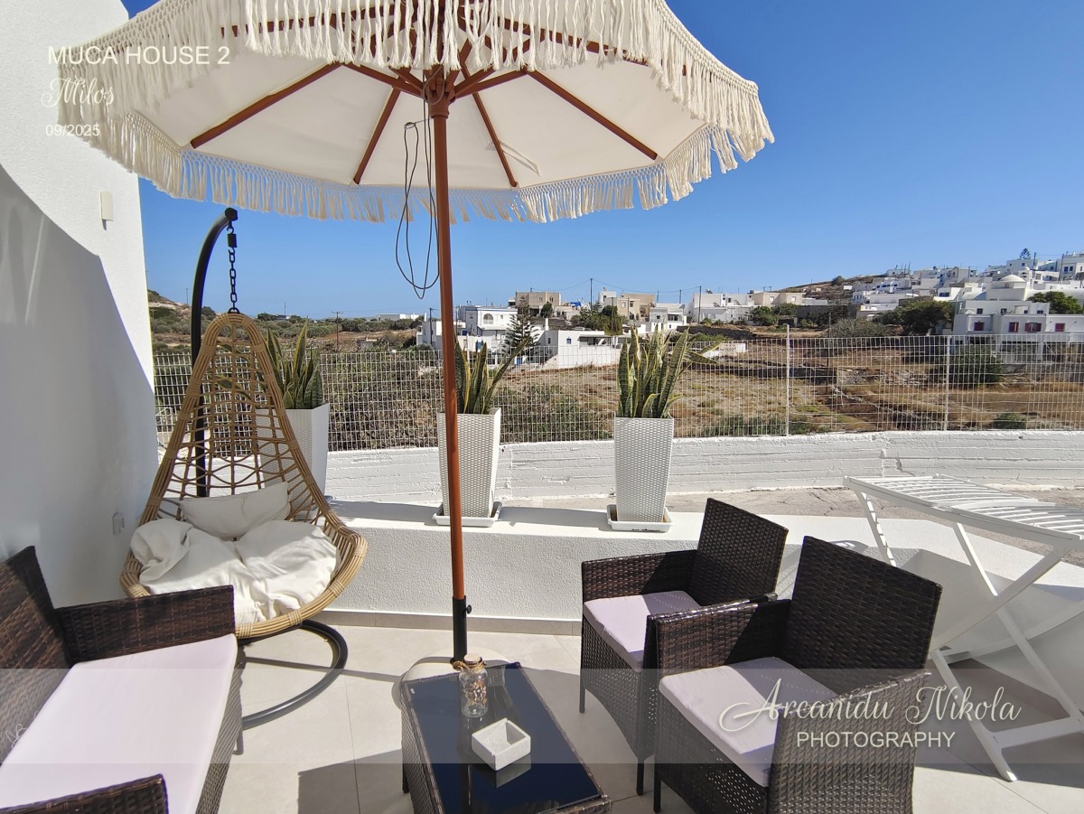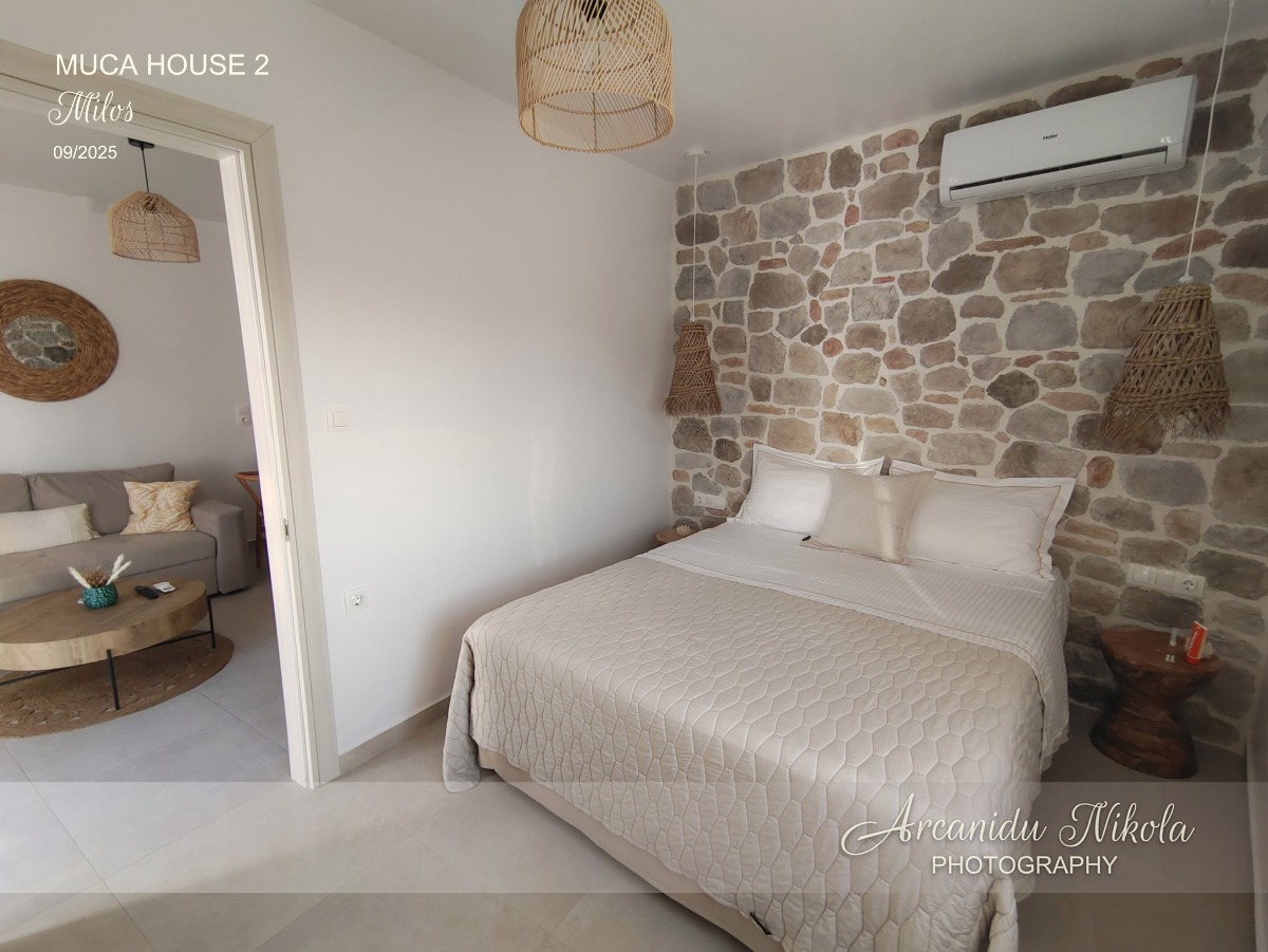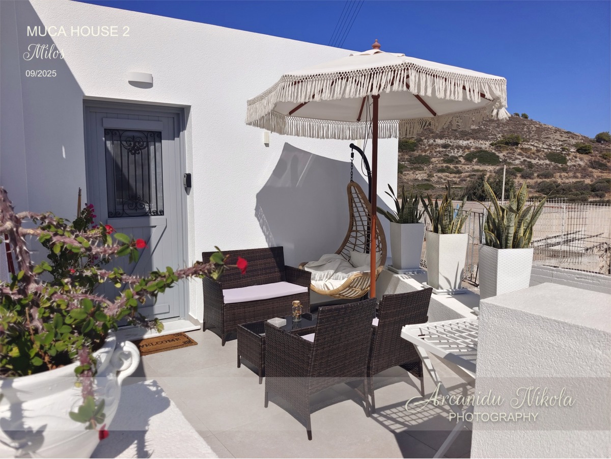 Dům Muca house 2 byl nedávno kompletně zrekonstruován. Nachází se ve vesnici Triovasalos, která je velmi blízko turistické vesnice Plaka, pláží Sarakiniko, Plathiena, Fyropotamos a Mandrakia (5 minut jízdy).