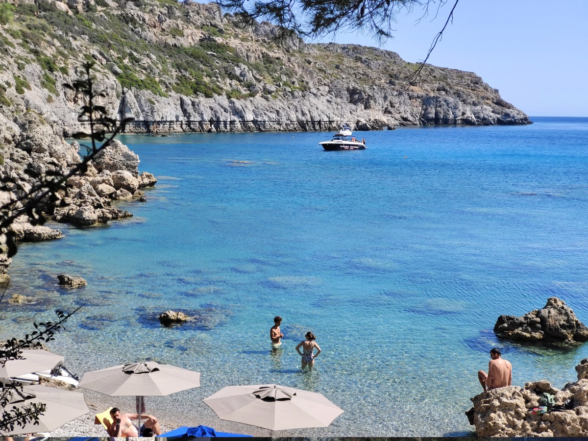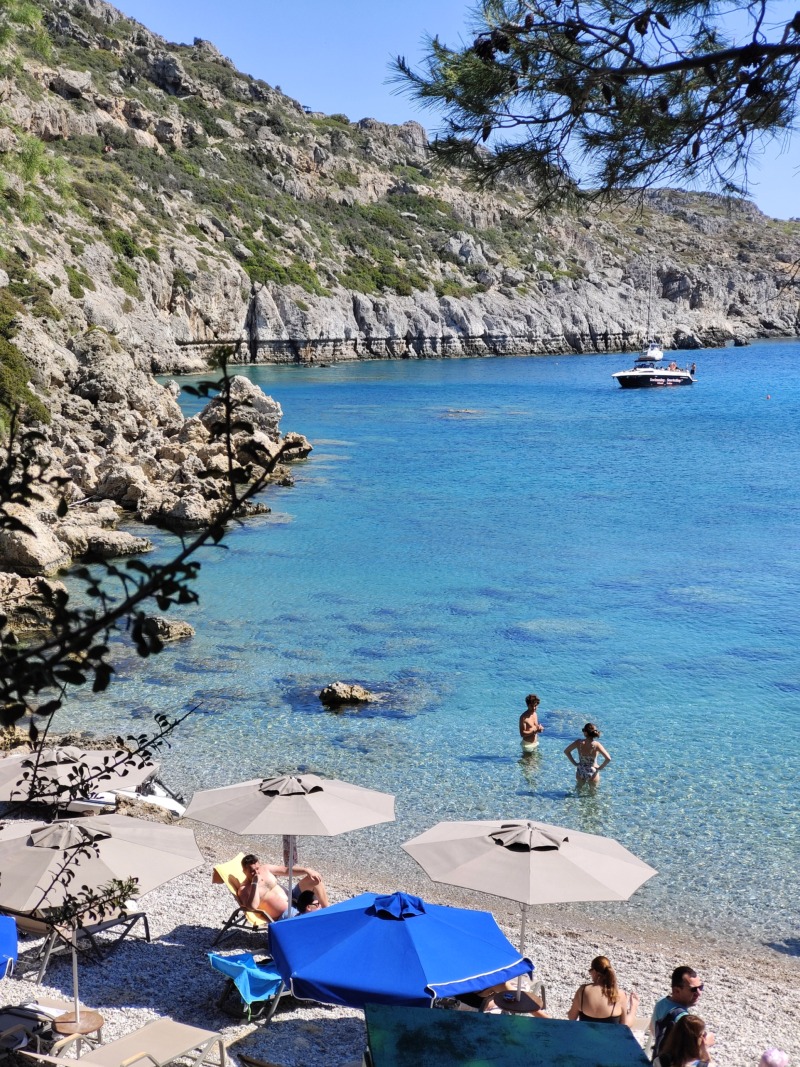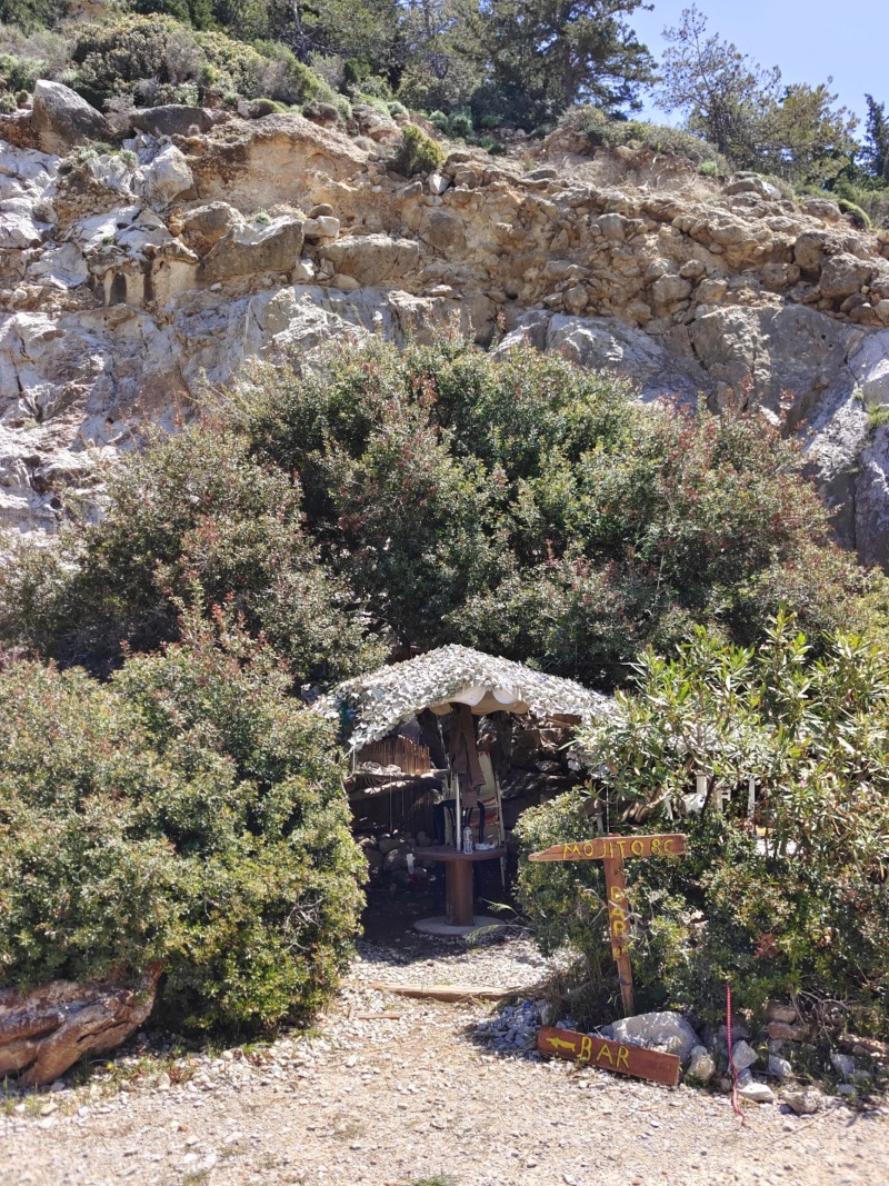 Této verzi věřím víc, možná i proto, že jsem na toto téma mluvila s místními, když jsme u Tasose kupovali mojito a mezi obyvateli seděl i jeden muž, jehož dědeček v této zátoce pracoval jako hlídač právě u