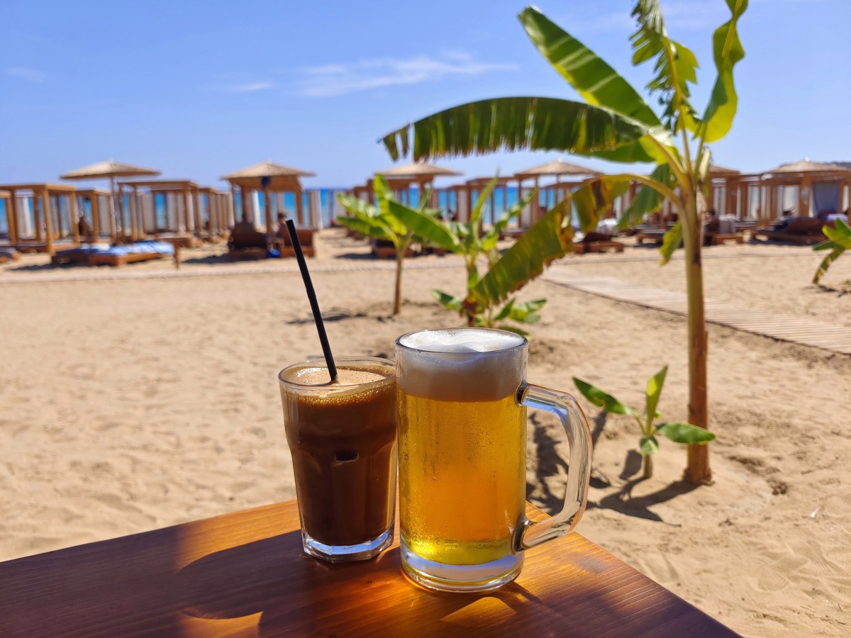 2 lehátka + slunečník za 20 € (rok 2023), jsou zde toalety a sprchy, ale pokud neradi platíte, místo pro vaši osušku je hlavně vpravo. Točené pivo Zythos za 5,50 € a frappe za 4,20 € v baru (rok 2023). Parkování zdarma.