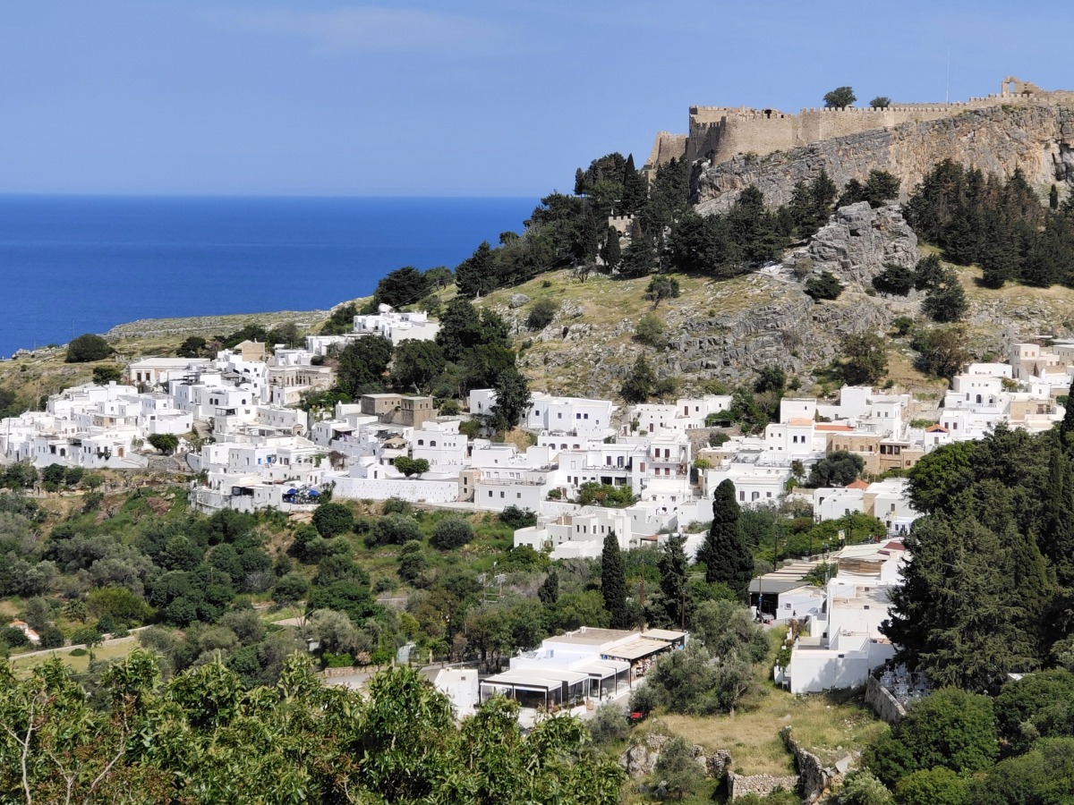 V nadmořské výšce 116 metrů je to ideální výška pro panoramatické a velkolepé výhledy na vesnici a okolní pobřeží. Z místa Lindos Akropolis lze krásně vyfotit bílé domy vesnice i v dálce zátoku Agios Pavlos.