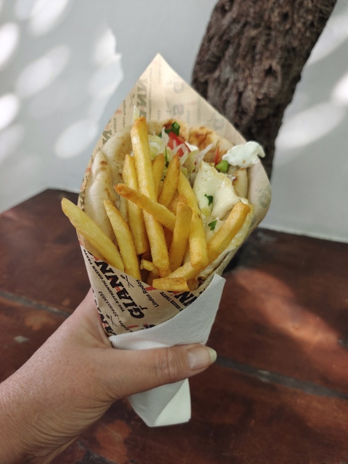 Koupili jsme si zde vegetariánský "gyros" se sýrem chaloumi místo masa. Cestou k parkovišti jsem zahlédla překrásné velké dračí lilie.