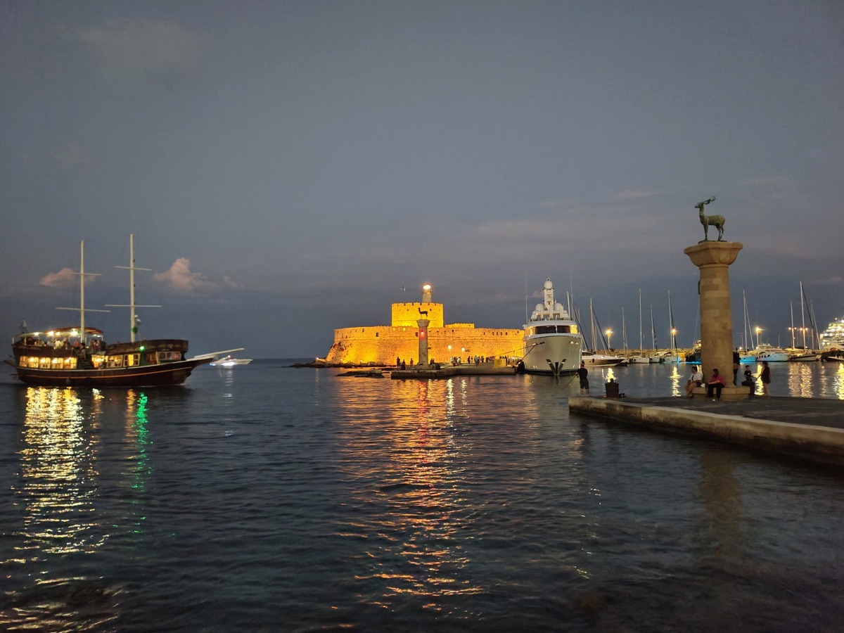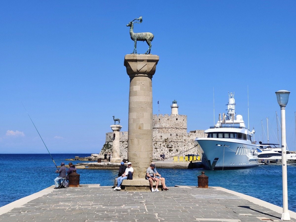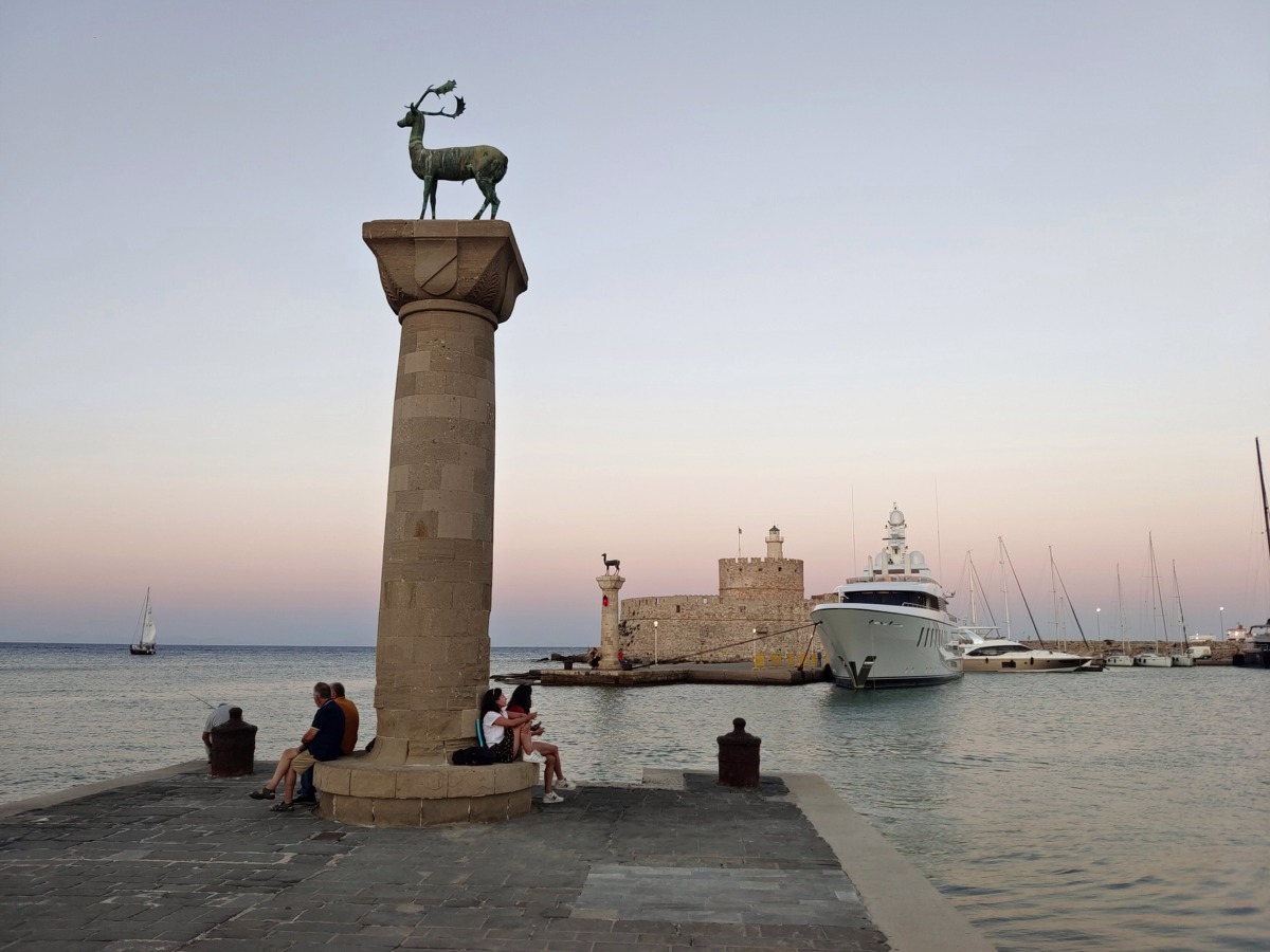 Nyní v přístavu Mandraki stojí jelen. Legenda ostrova Rhodos hovoří že zde stál Kolos z Rhodosu. Pěkné místo pro fotografování a procházky po přístavu.