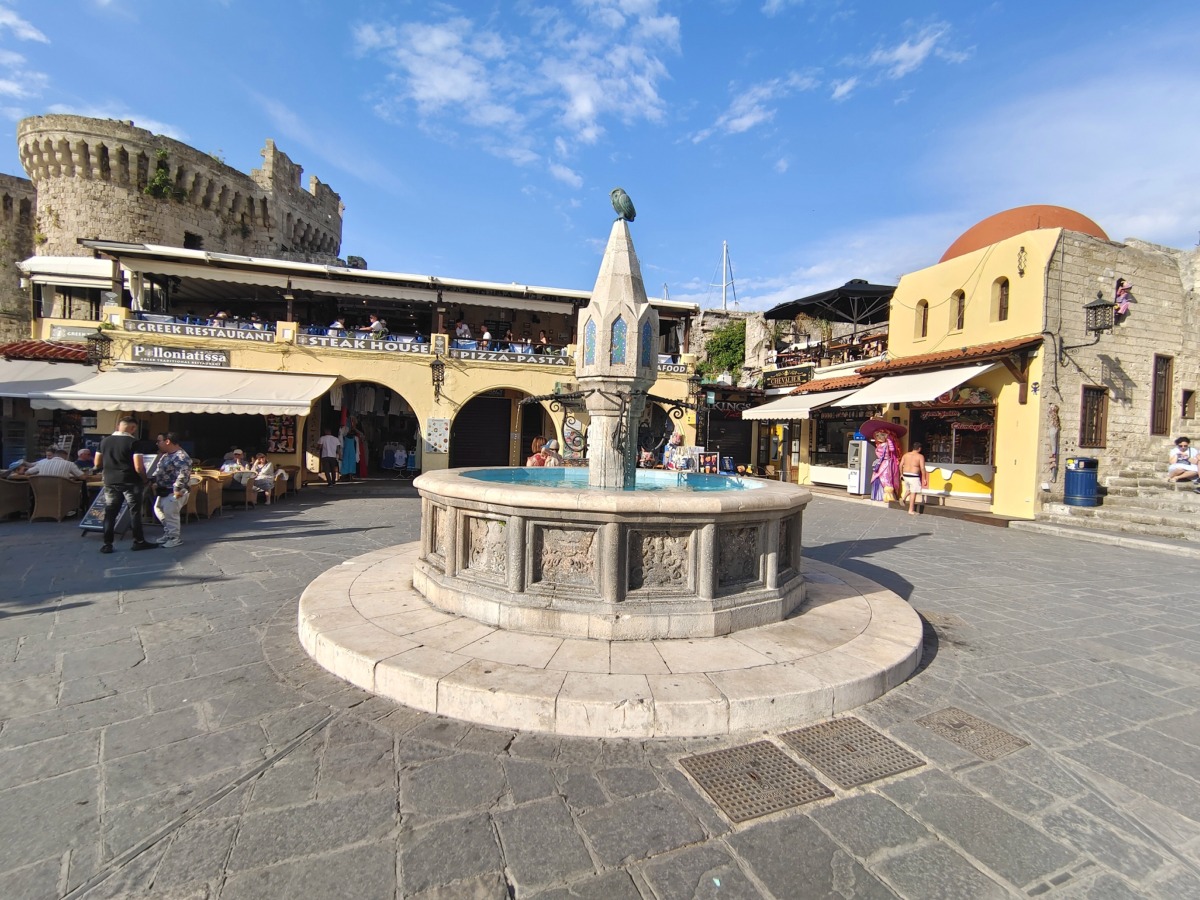 V přístavu Mandraki je také fontána Grande, tato fontána je poloviční replikou slavné středověké fontány Fontana grande ve městě Viterbo v Itálii.