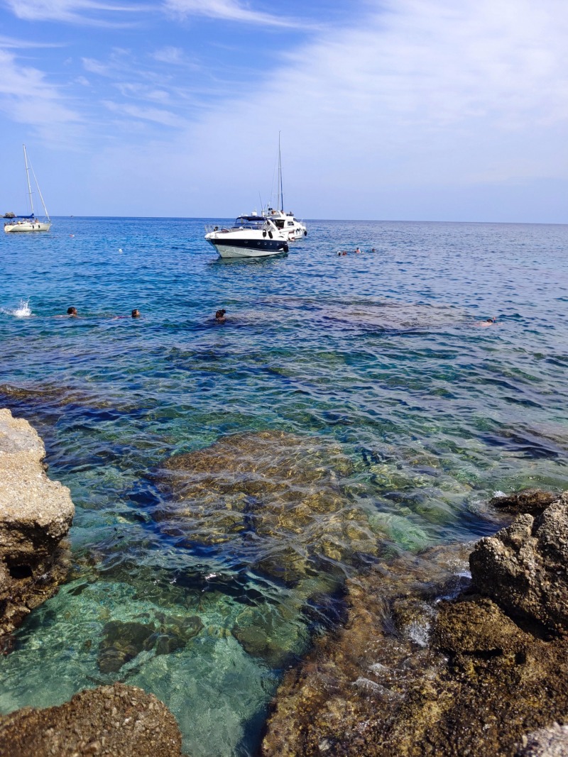 Zátoka s malým přístavem a malou kaplí je fantastická. Voda bez vln. Klid - vepředu u baru ne, tam hraje hlasitá hudba. Vzadu u kamenů jen sledujete ráno lodě, které odváží z přístavu turisty na výlety.