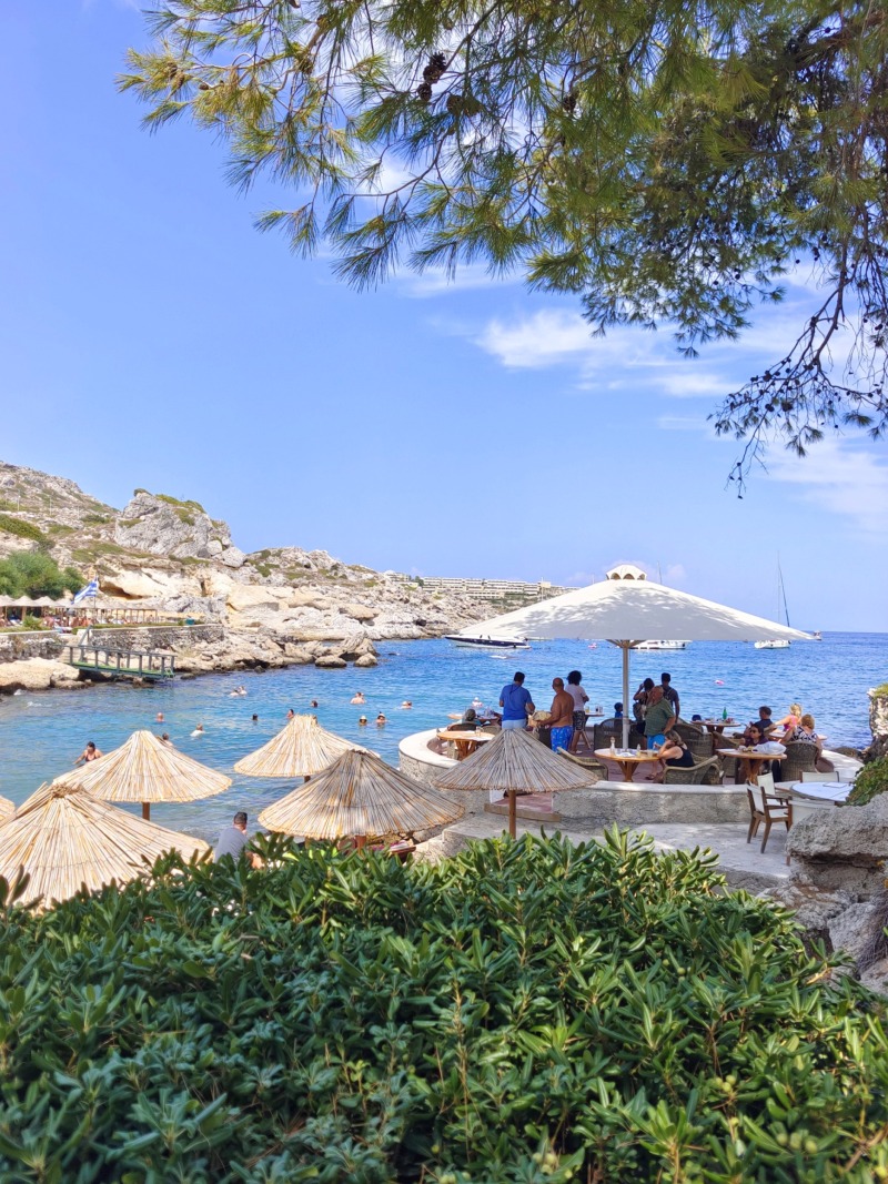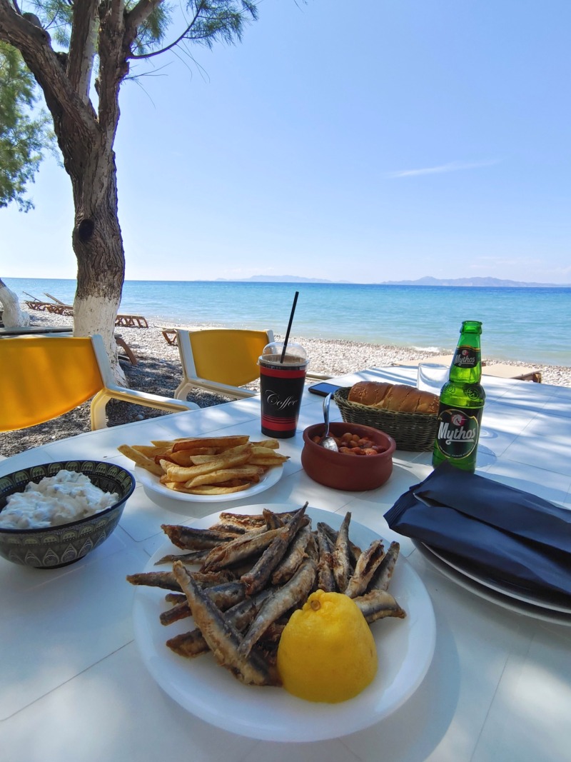 Pití a jídlo doporučuji vzít s sebou, protože Kounna Beach & Resto bar (ze kterého je krásný výhled) je skoro pořád plný a drahý. Šli jsme si sednout před 12tou hodinou, a již bylo plno (rezervace na celý den).