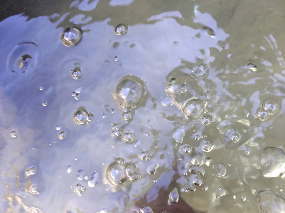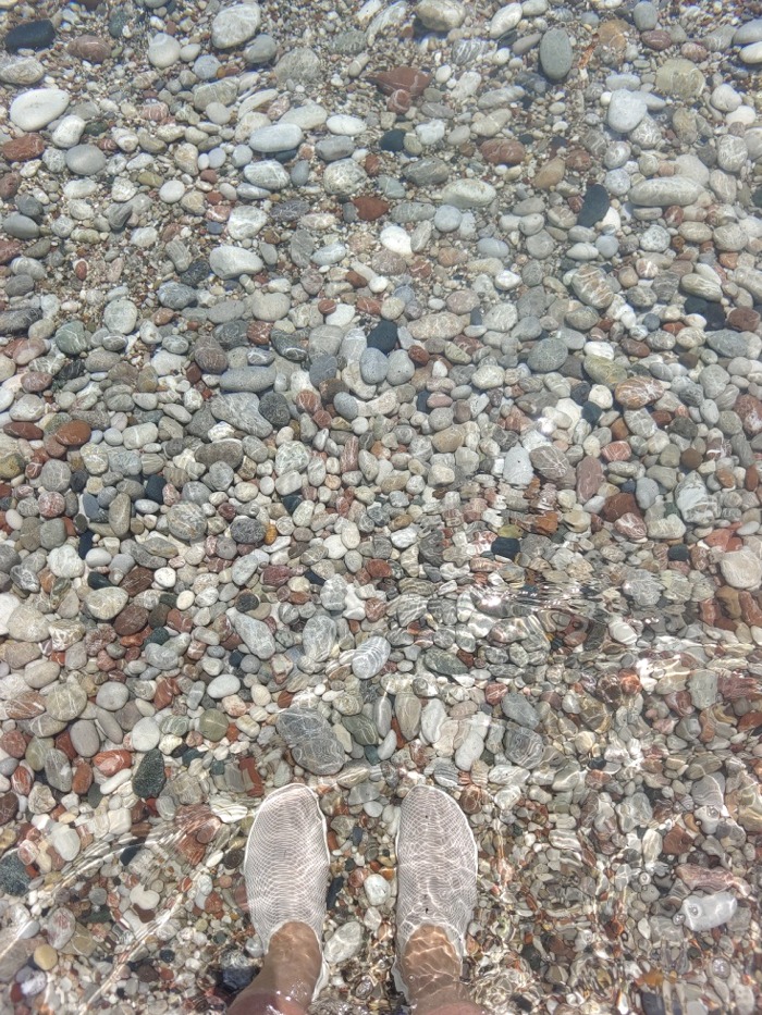 Na kraji vlevo jsme si obešli kameny a dostali se na zajímavé místo, kde byla rozkošně studená voda. Vyvěrá zde podzemní voda, v tomto místě krásně bublá a pohyb studeného proudu je pod hladinou okem vidět.