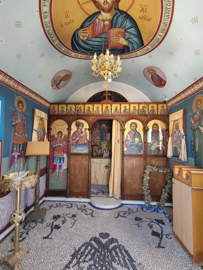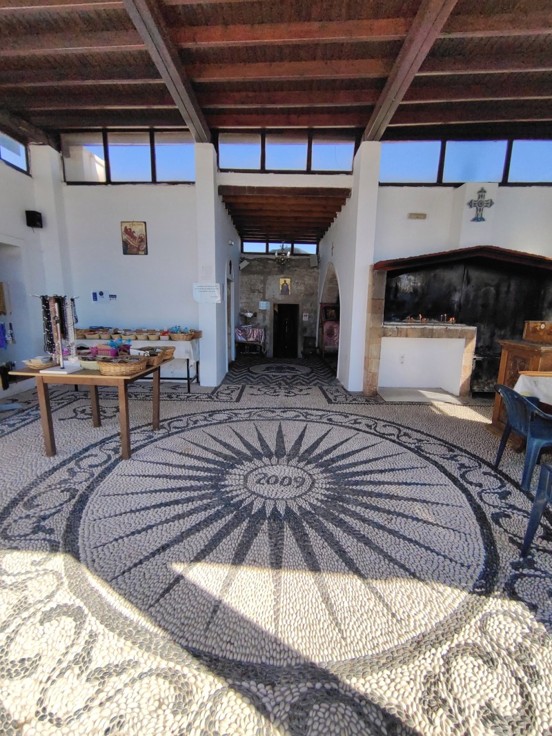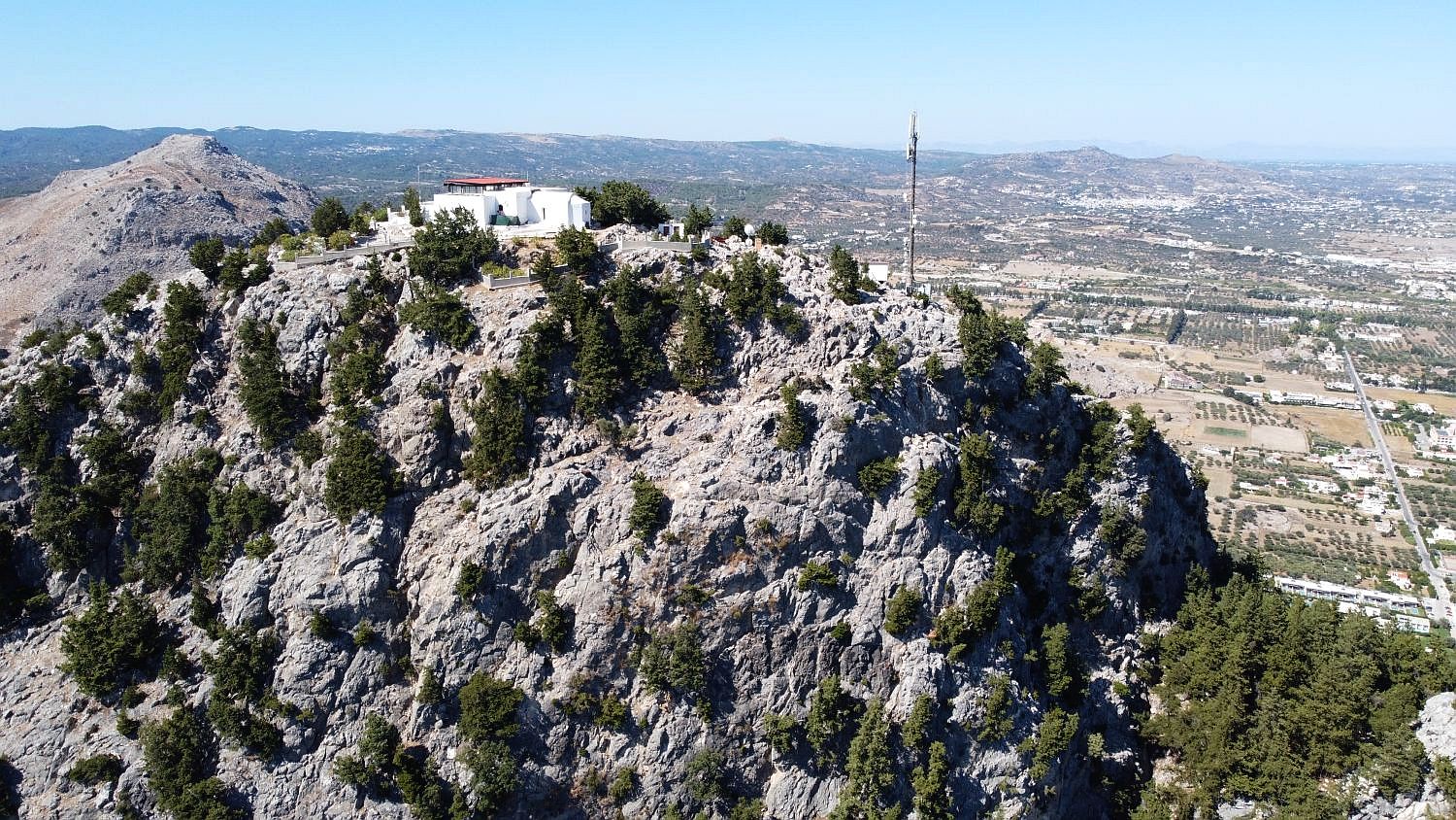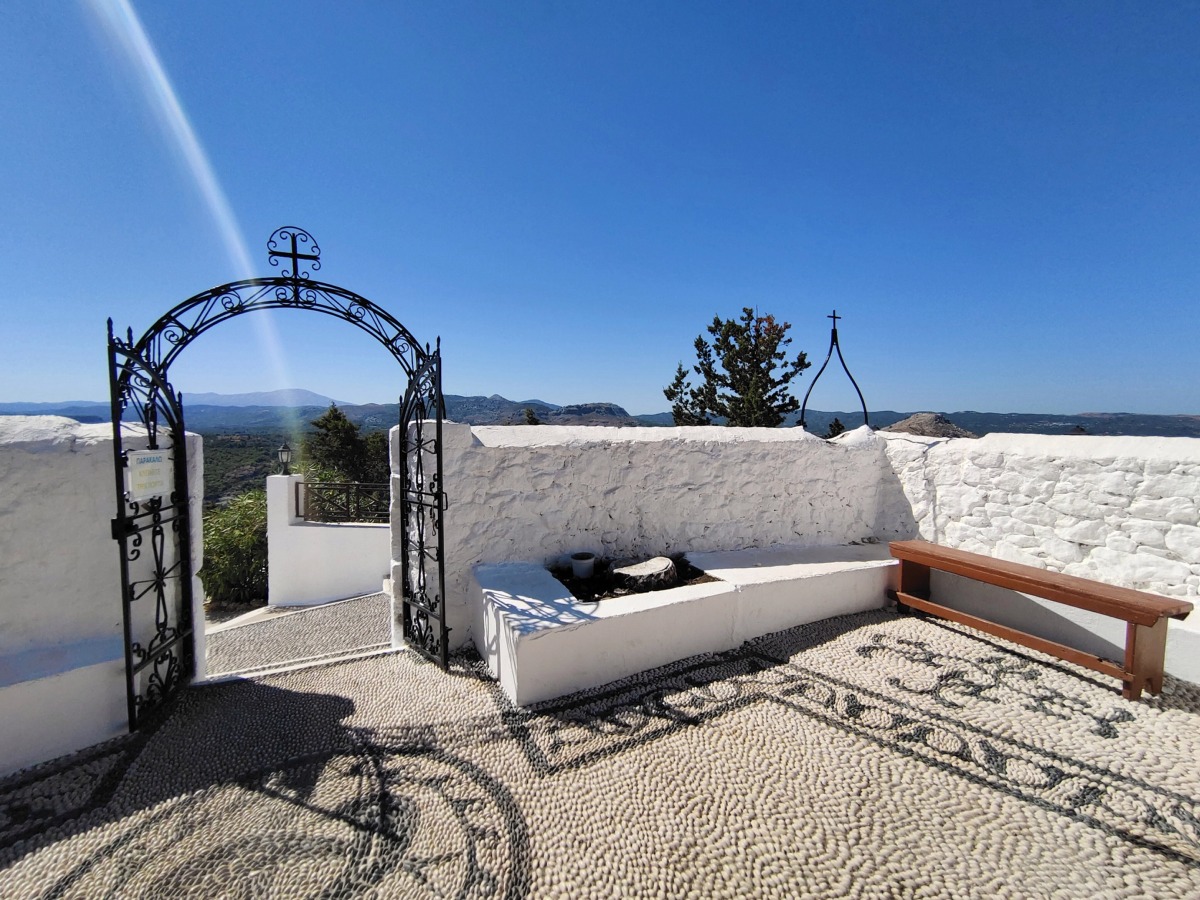 starověku oltář bohyně Artemis a probíhaly zde oběti zvířat. Tento klášter byl postaven podle dodekanéské architektury s dutými střešními taškami. Podlaha chrámu a nádvoří jsou pokryty oblázky a mušlemi. Některé ikony pocházejí z 19. století,