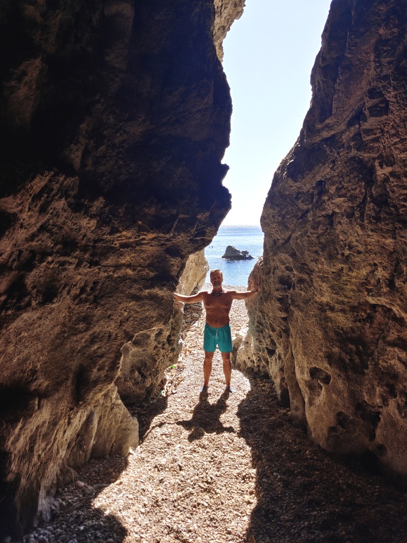 Na severním konci pláže je impozantní jeskyně, která je oblíbeným cílem milovníků potápění a šnorchlování. Kromě barevných rybiček jsou zde často k vidění i malé chobotnice a sluneční paprsky pronikající otvory jeskyně jsou v mořské vodě obzvlášť jedinečnou podívanou.