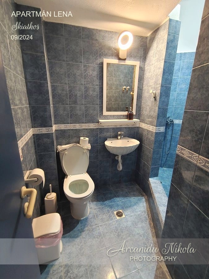 Obě koupelny se sprchou byly vybaveny mýdlem na ruce, je zde toaletní papír, ručníky, osušky a podložka na zem po sprchování. Na zdi visí fén. WC papíry byly doplňovány, ale hygienické věci (šampon, sprchový gel) si přivezte z domu, zde nejsou.