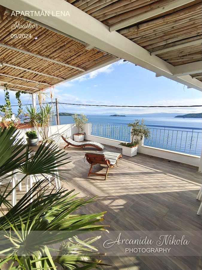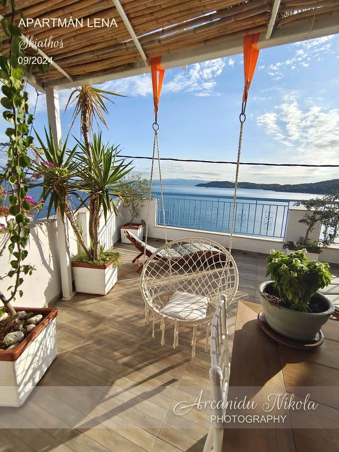 Fantastická je střešní terasa s lehátky, stolem a židlemi, houpačkou, překrásnou rostlinnou dekorací a dechberoucím výhledem na moře. Na terasu si můžete chodit odpočívat, nebo se opalovat.
