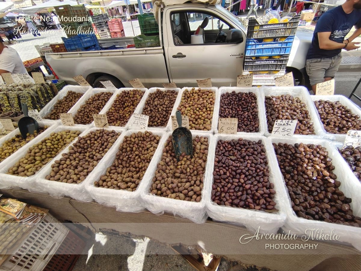 Kousek od muzea je veřejné tržiště Nea Moudania - otevřené jen ve středu od 7 do 14 hod. Mají tu vše, oblečení, domácí potřeby, zeleninu, ovoce, čerstvé ryby apod.