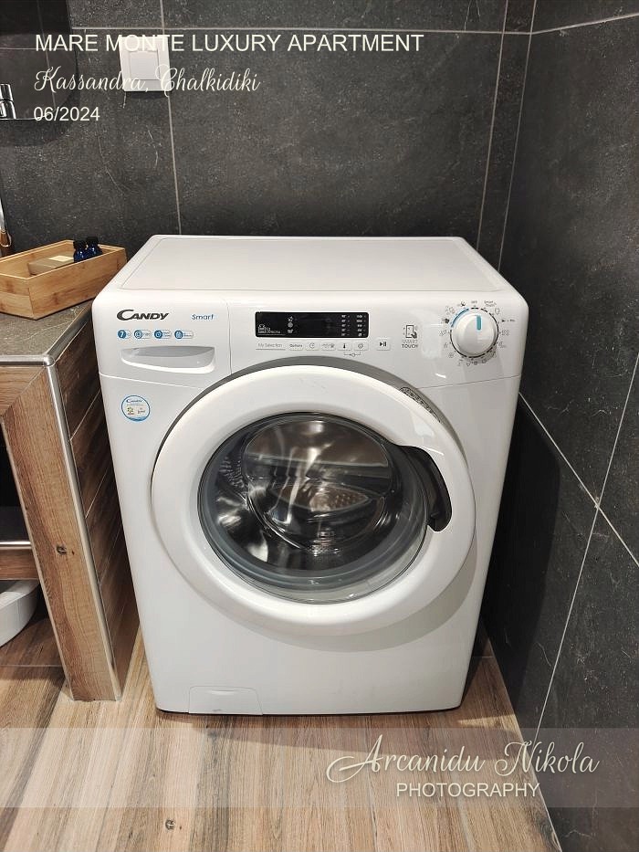 Koupelna je prostorná, WC je odděleno od sprchového koutu, má také pračku, připraveny byly i kapsle do pračky, dostali jsme sprchový gel, mýdlo na ruce, k dispozici byl fén, WC papír