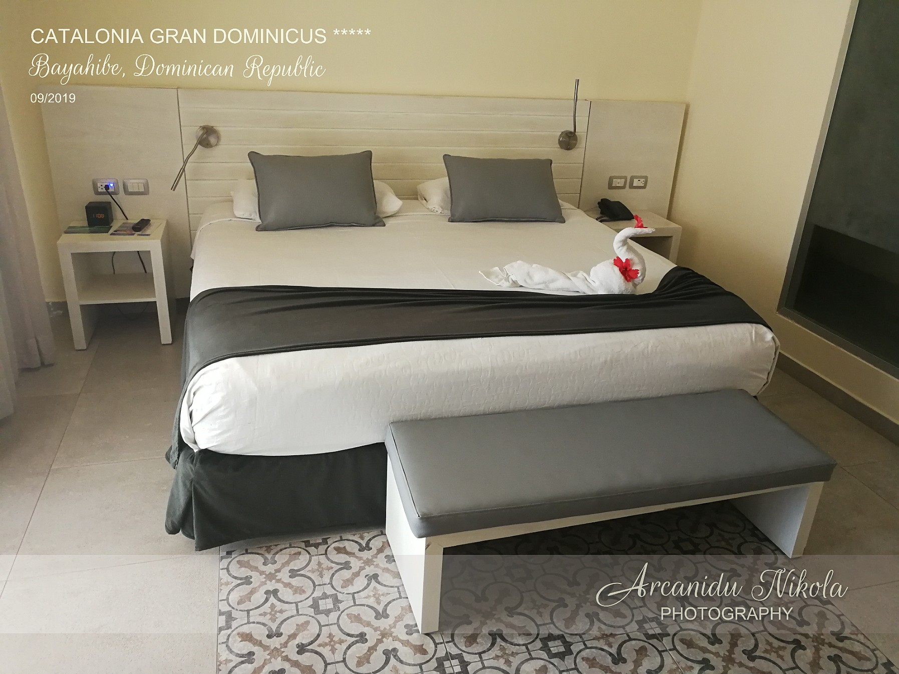 Pokoj byl moderní a nadstandardně vybavený. Skříň, botník, trezor, velké zrcadlo, set pro přípravu překapávané kávy, minibar s chlazenými nápoji zdarma (Pepsi, Pepsi light, Mirinda, Sprite, Tonic, pivo v plechovce, voda), psací stůl