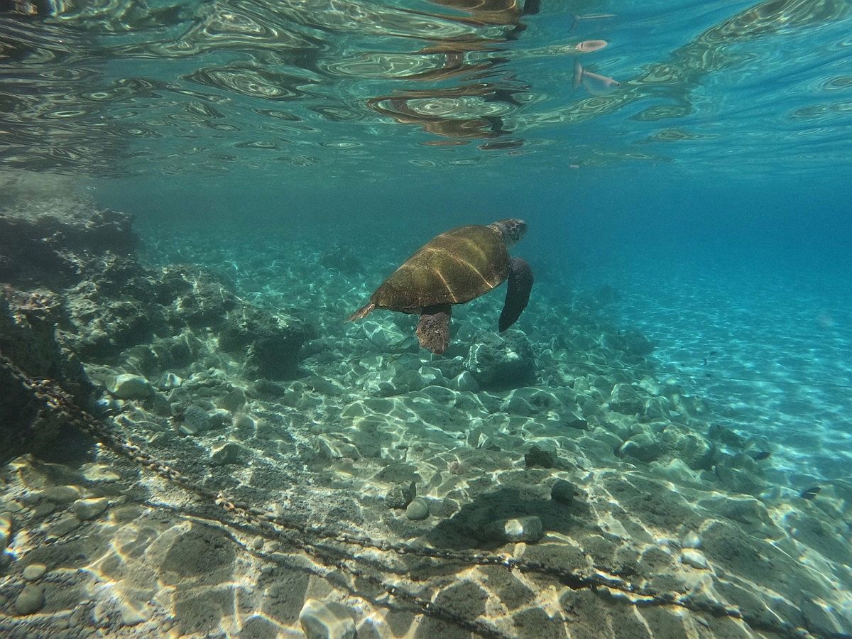 Protože jsem očekávala jejich přítomnost, vzali jsme s sebou i podvodní kameru a manžel dostal úkol je vyfotit ;) Lidé se želv bojí, protože je známé, že kouškou. Dnes tam ceduli o pozornosti před želvami přivrtávali.