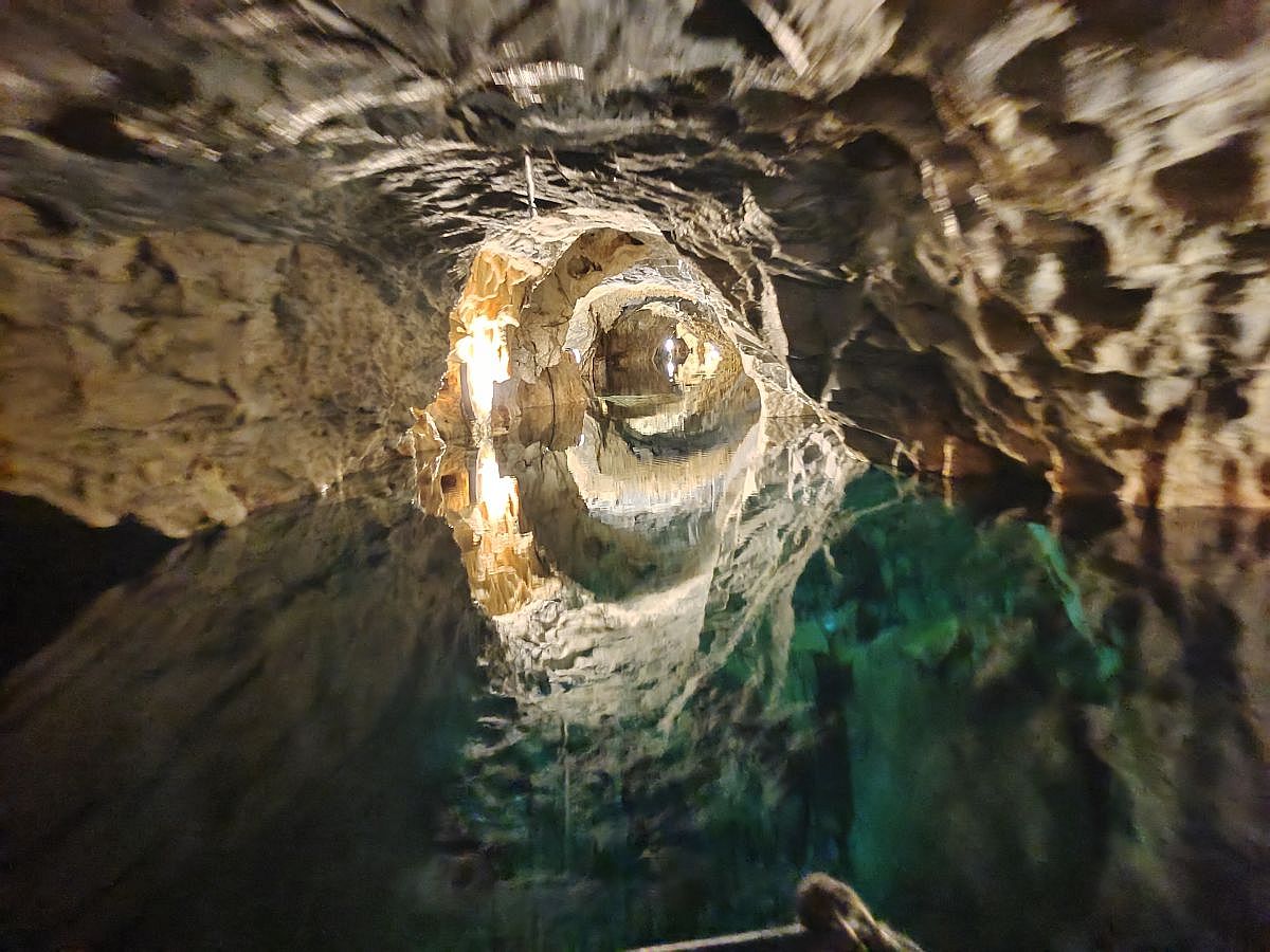 hloubce 71 metrů. Maximální hloubka jeskyně je mimo turistickou trasu a dosahuje 80 metrů. Většina jeskyně se nachází pod hladinou vody.