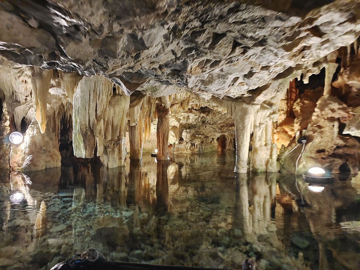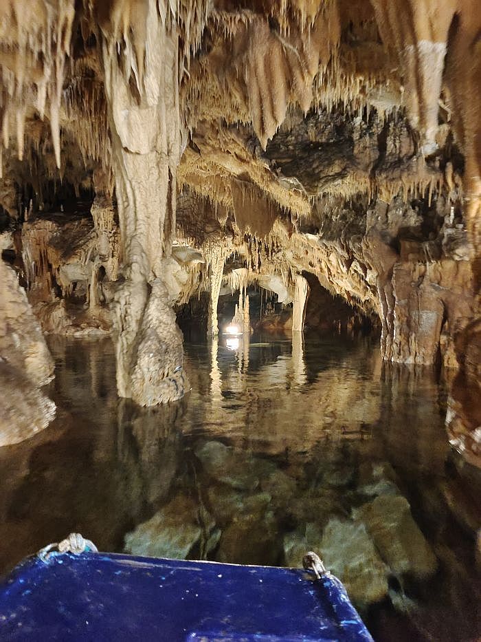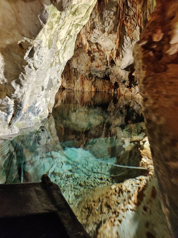Další návštěvou byla jeskyně Diros. Jeskyně Diros je jedna z nejvíce šokujících jezerních jeskyní na planetě, obsahuje neuvěřitelný komplex místností s krystalickými útvary.