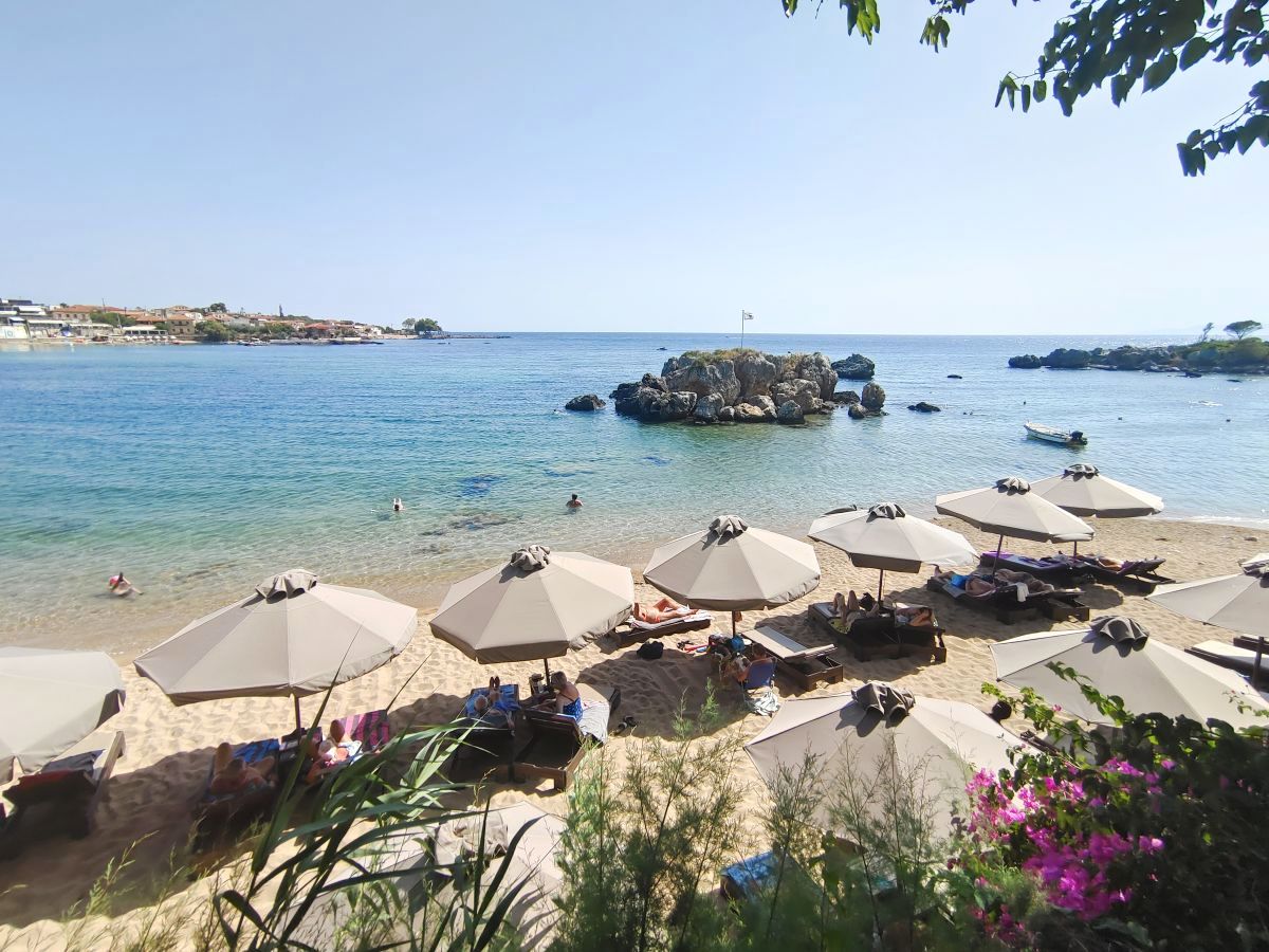 Stačí jen z pláže s lehátky udělat pár kroků kolem kamenů a dostanete se do míst, kde je méně lidí a více klidu, i více krásy přírody. Je zde půjčovna lodiček, šlapadel, kanoe apod.