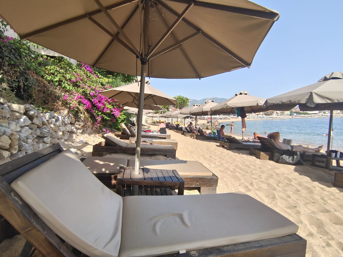 Veřejné parkoviště na městské pláži je pro mnoho aut. Kousek od parkoviště u mola s loďkami jsme si vybrali bar Surreal, kde lehátka nabízejí zdarma, stačí si objednat nápoje či jídlo. Lehátka byla docela tvrdá. Jinak komfortní místo - byla zde sprcha,