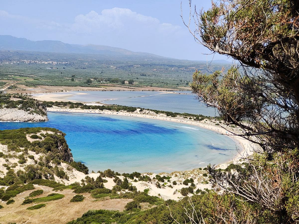 Nad pláží je jeskyně Krále Nestora, a pevnost Navarino, odkud lze pořídit krásné snímky. Vyšlapat nahoru k jeskyni byl pro nás v odpoledním čase offroad se saunou. Neapamatuji si, kdy naposledy ze mě takhle teklo :-D Ale koukat se pak dolů, a nechat ovívat větrem na kopci, stojí za to. Jeskyně je velká a zajímavá. Pevnost jsem už "nedala".