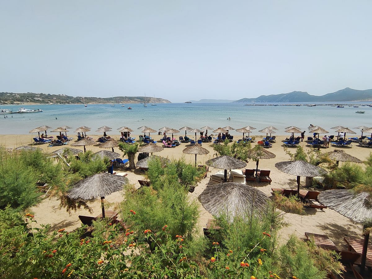 Přeplněná byla i v červnu a v baru nad pláží nebylo možné si ani sednout. Je přecpaná slunečníky a lehátky