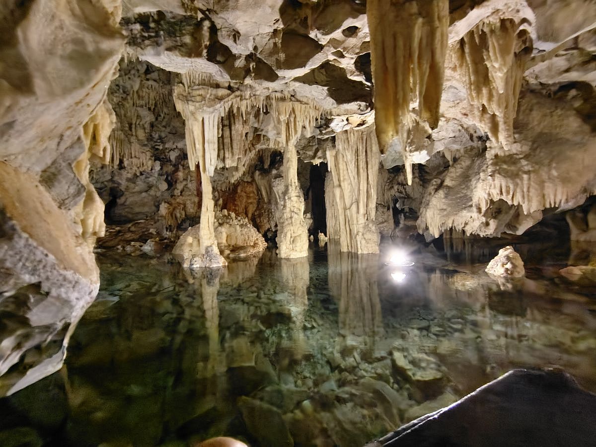 Bílé stalaktity a stalagmity, působivé vodopády a třpytivé krystaly zdobí každý kout a vytvářejí nesrovnatelnou podívanou, která bere dech!