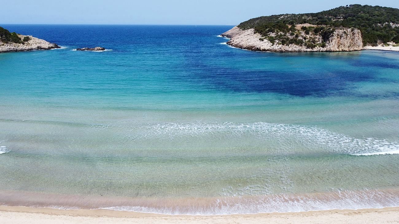 Pláž Kalogria Je to malá zátoka s křišťálově tyrkysovou vodou a světlým velmi jemným pískem. Vstup do vody je velmi pozvolný. Pláž je v sezóně velmi přeplněná, hlídaná plavčíkem.