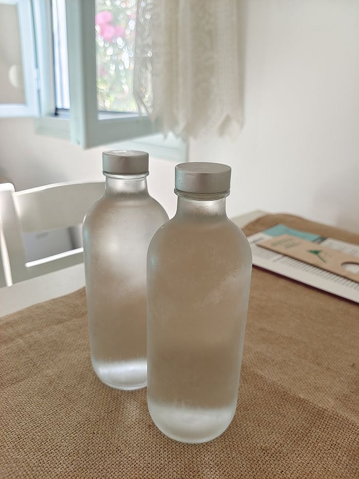 V kuchyni stojí jídelní stůl se 4 židlemi. V lednici byla pro nás nachystaná voda pro 2 osoby ve skle - přesně můj styl.