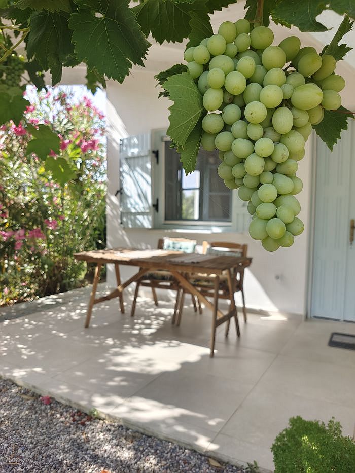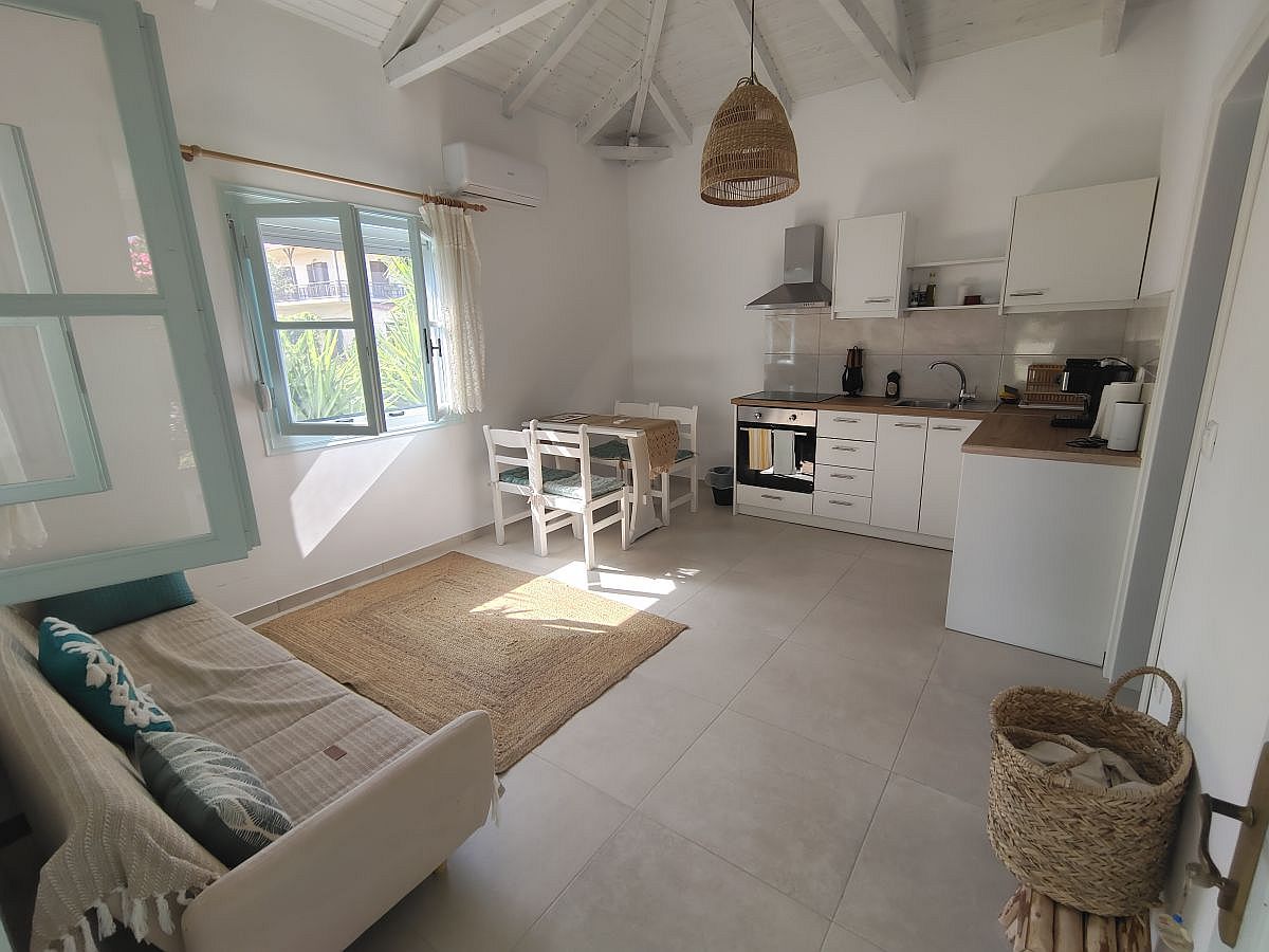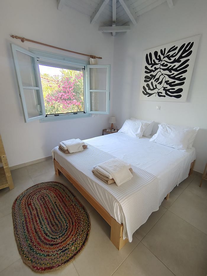 Celé ubytování je řešeno v přírodním stylu, a v jemných letních barvách, které k Řecku patří.