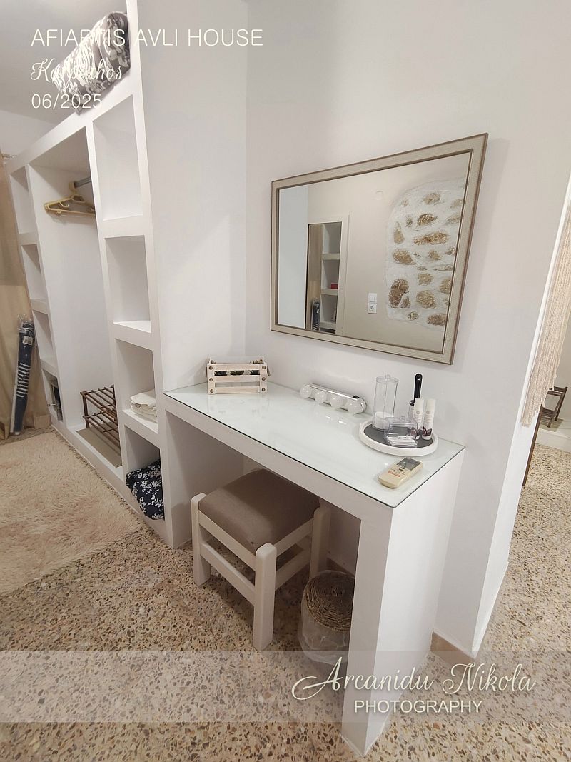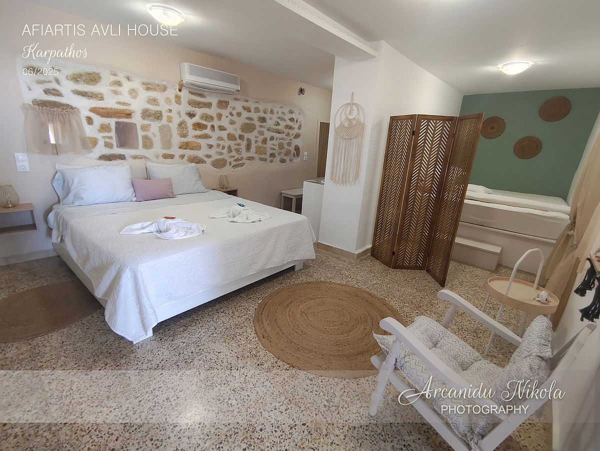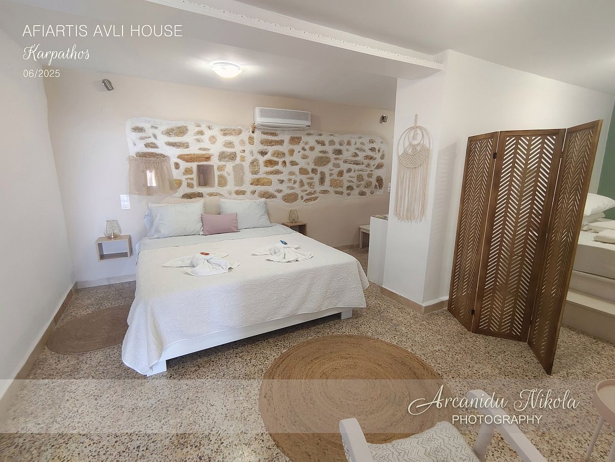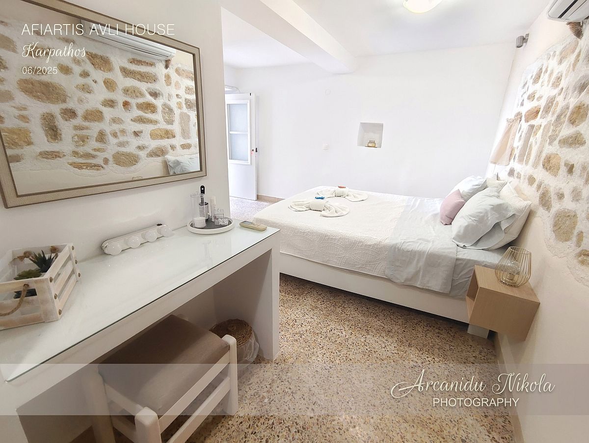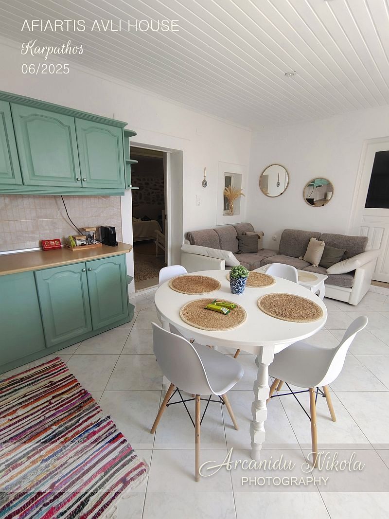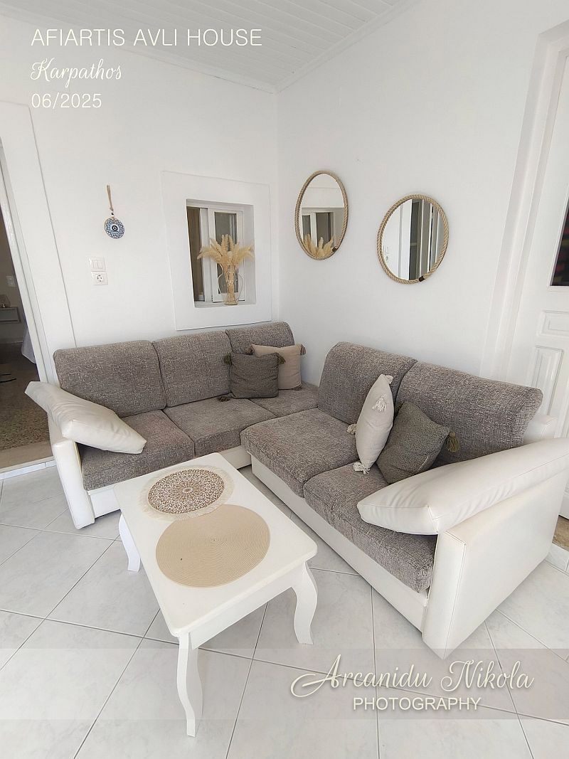 Afiartis Avli House je moderní, prostorný, čistý a uklizený dům o velikosti 65 m². Dům je v blízkosti letiště, a nejdůležitějších vesnic a pláží na jihu ostrova. Díky lokalitě je zde klid.