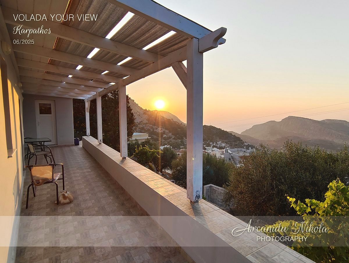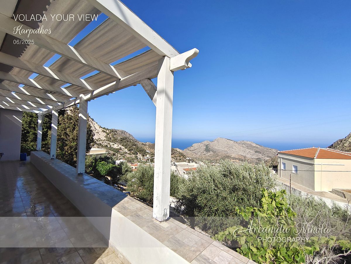 Dům má velkou terasu, ze které je krásný výhled na hory, moře a celou vesnici. Terasa je místo vhodné pro krásné snídaně, večeře, odpočinek, relax. Nejlepší je zde sedět u východu slunce. Díky lokalitě je zde klid.