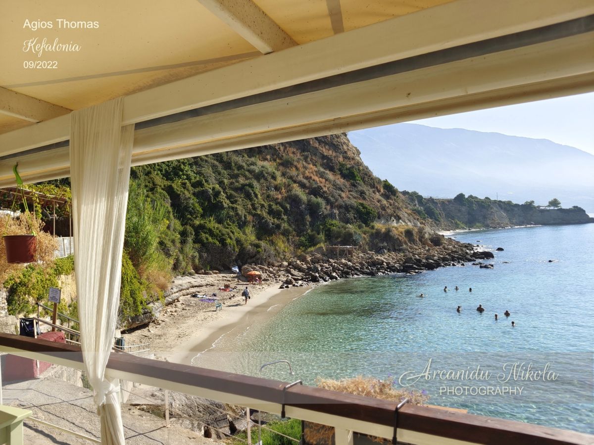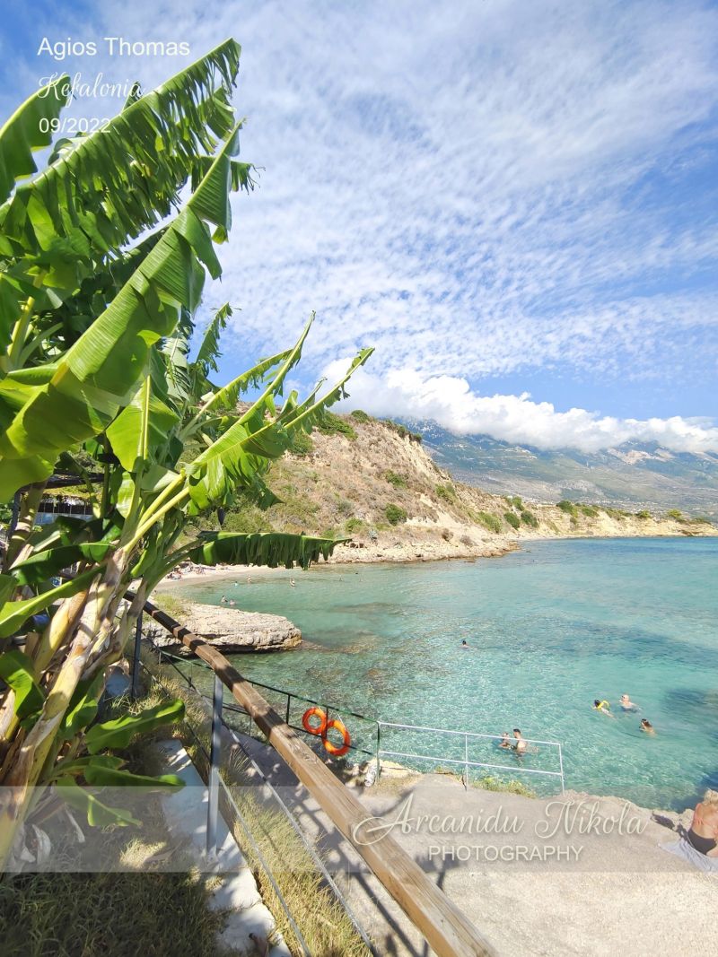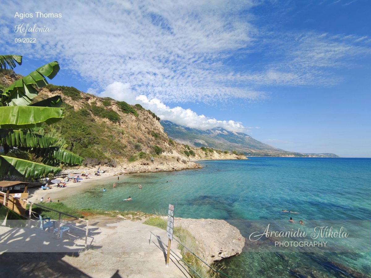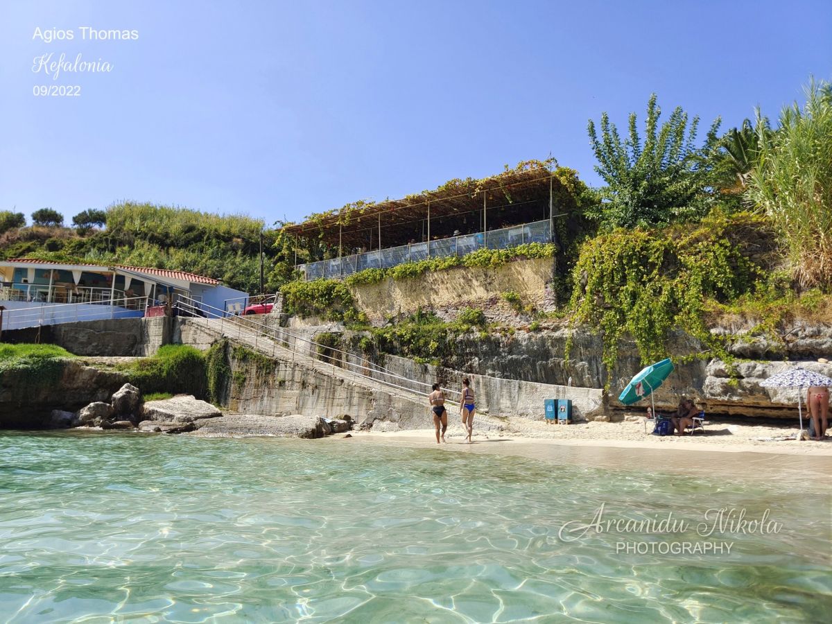 Agios Thomas se skládá ze dvou písečných pláží. První pláž je malá s jemným pískem a hned nad ní je malebná taverna. Druhá pláž je větší a dosažitelná přes skalnatou desku, která je alternativním místem pro opalování.