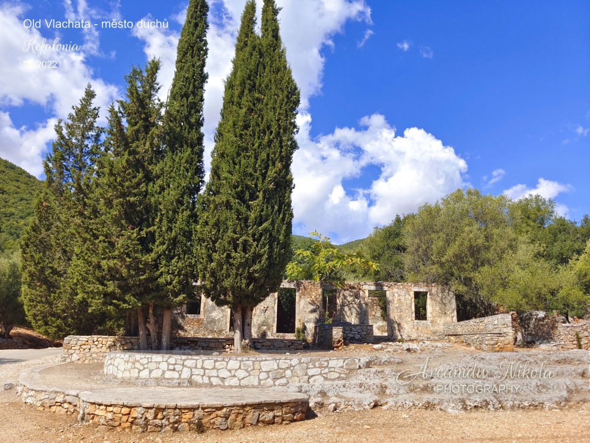 Obec Vlachata byla velmi těžce poškozena ničivým zemětřesením v roce 1953 (7,2 Richteru) a její obyvatelé byli nuceni se odstěhovat, většina se odstěhovala do vesnice Karavomylos. To, co zůstává, nám dává jedinečný pohled do minulosti. Mezi stromy a zelení,