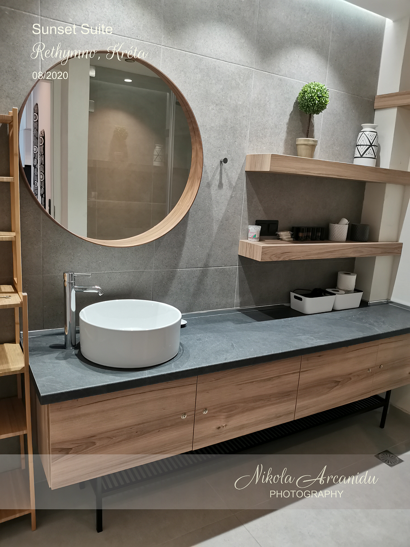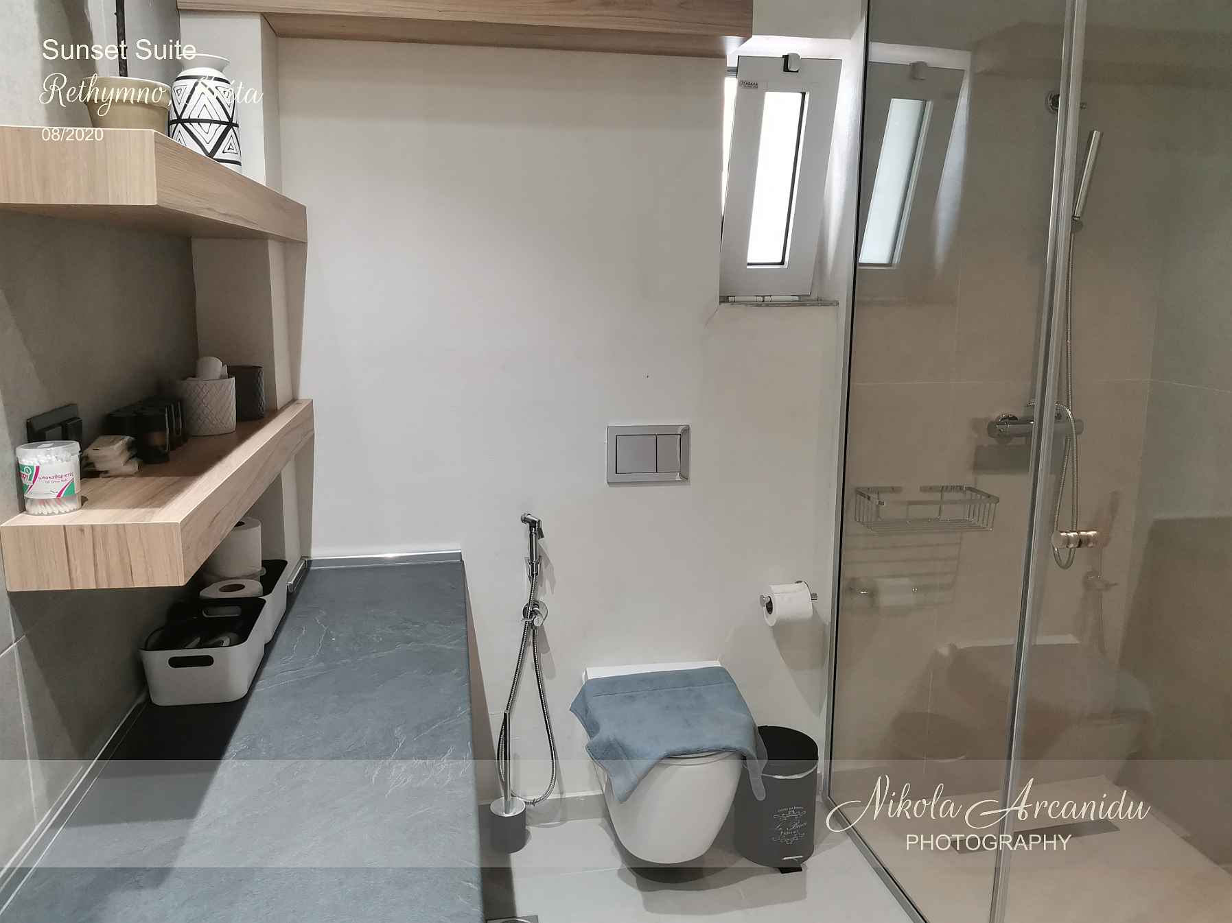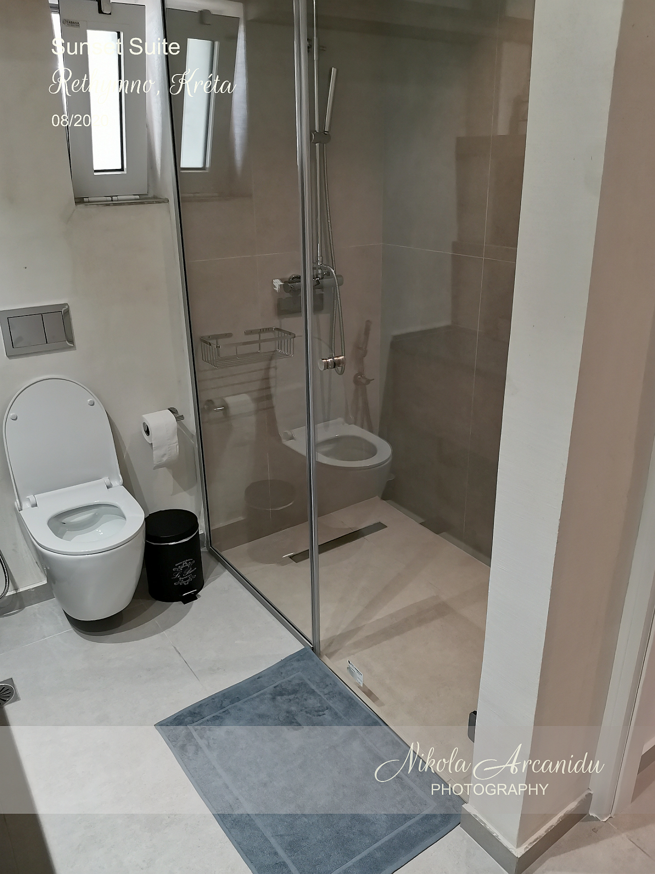 V koupelně byla připravena drogerie - vlasový kondicionér, šampón, tělový gel a mýdlo - vše bylo v podobě olivového oleje. Dál byl v koupelně připraven fén a dostatek toaletního papíru.